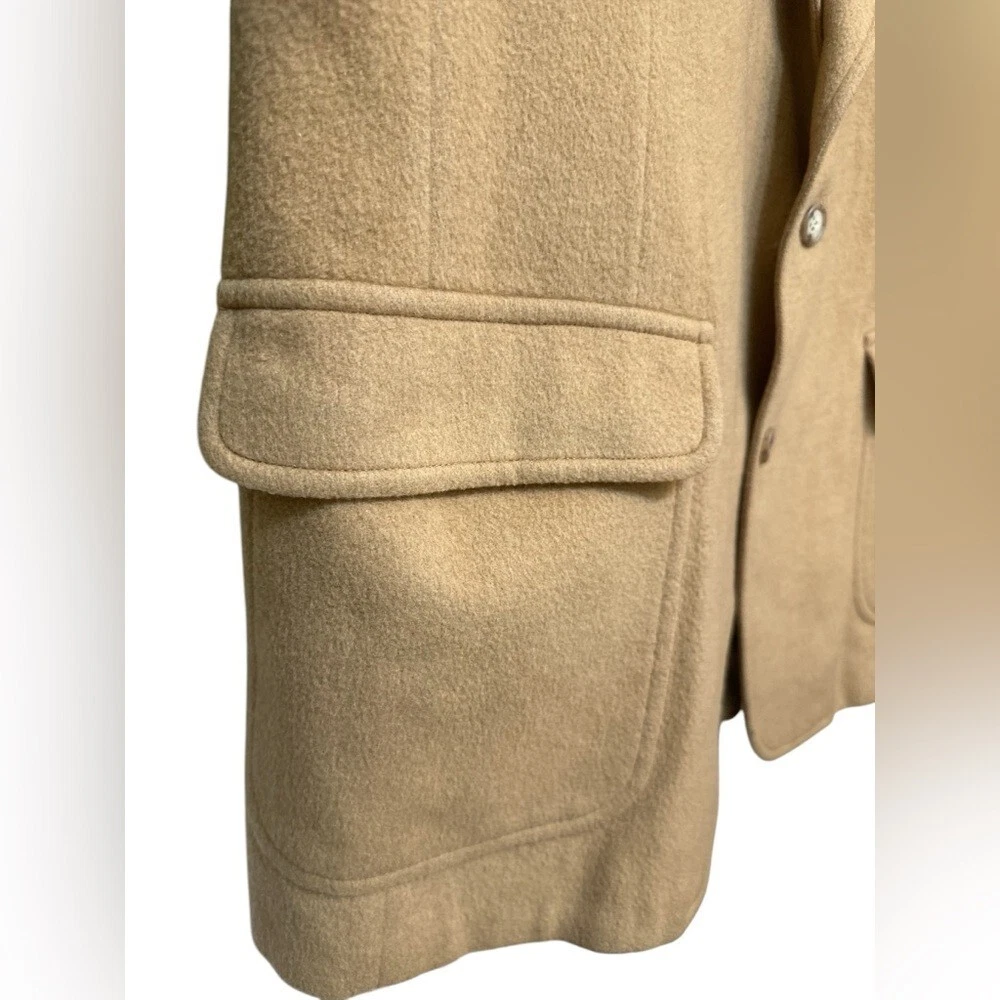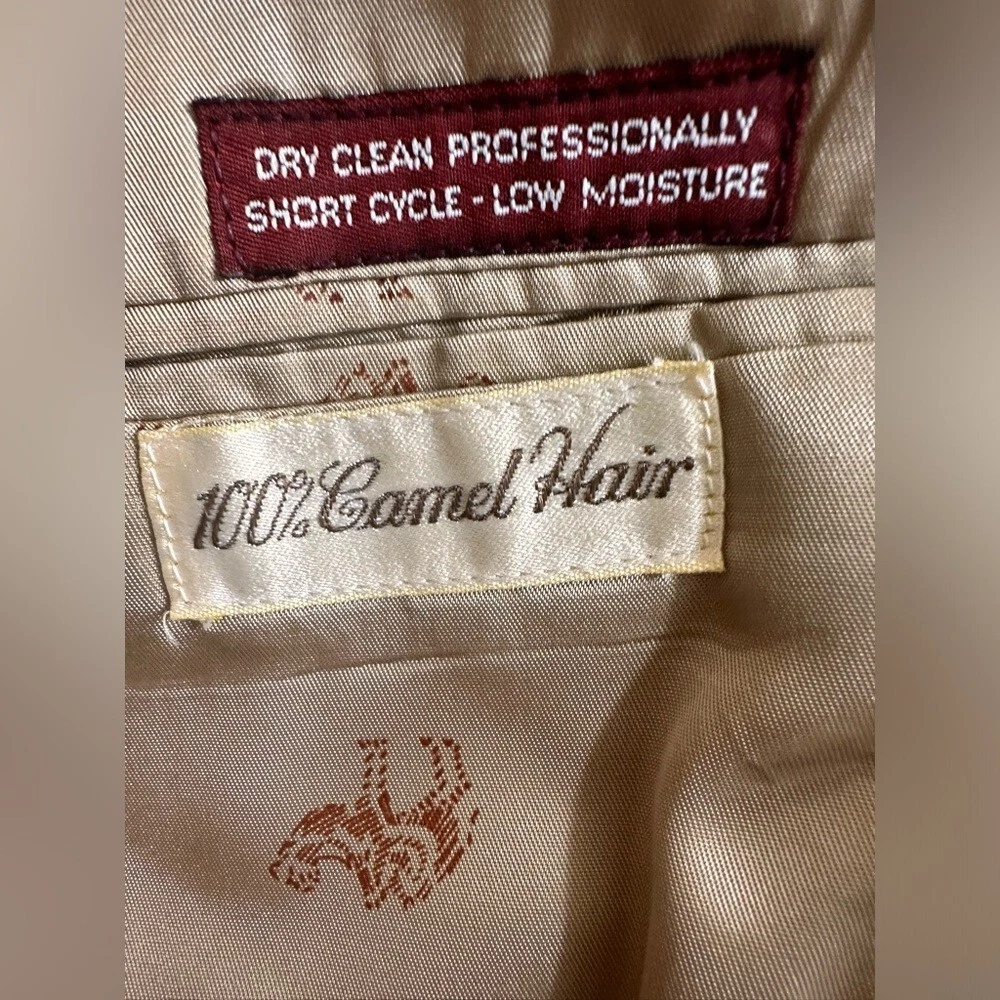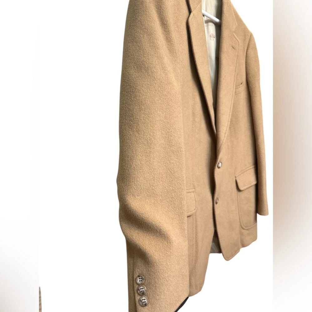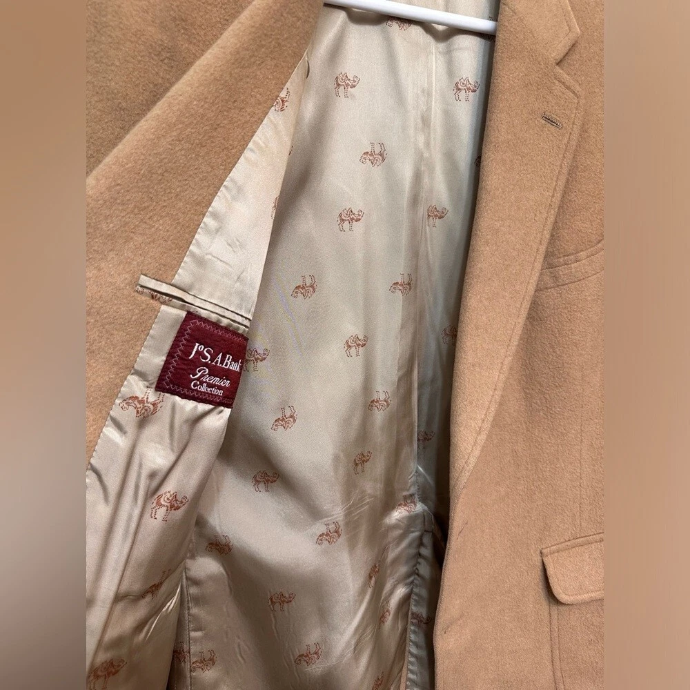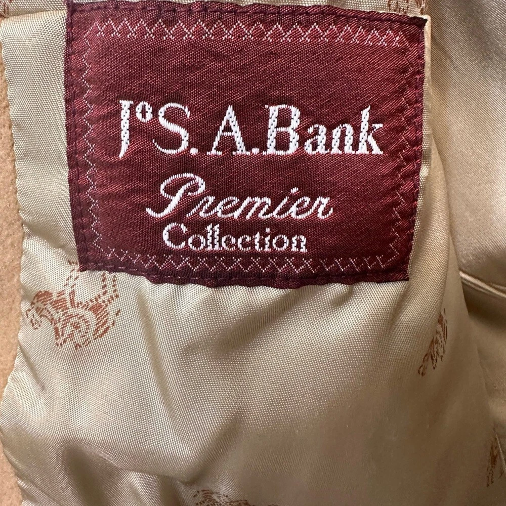 Vintage Jos A Bank Premier Collection 100% Camel Hair Blazer. Amazing condition. Pit to pit 24 inches. Shoulder to bottom 33 inches. Silk Lining • Pockets Inside • 2 Front Pockets with Flaps • Hankershift Pocket • Faux Wood Button Detail • 100% Camel Hair