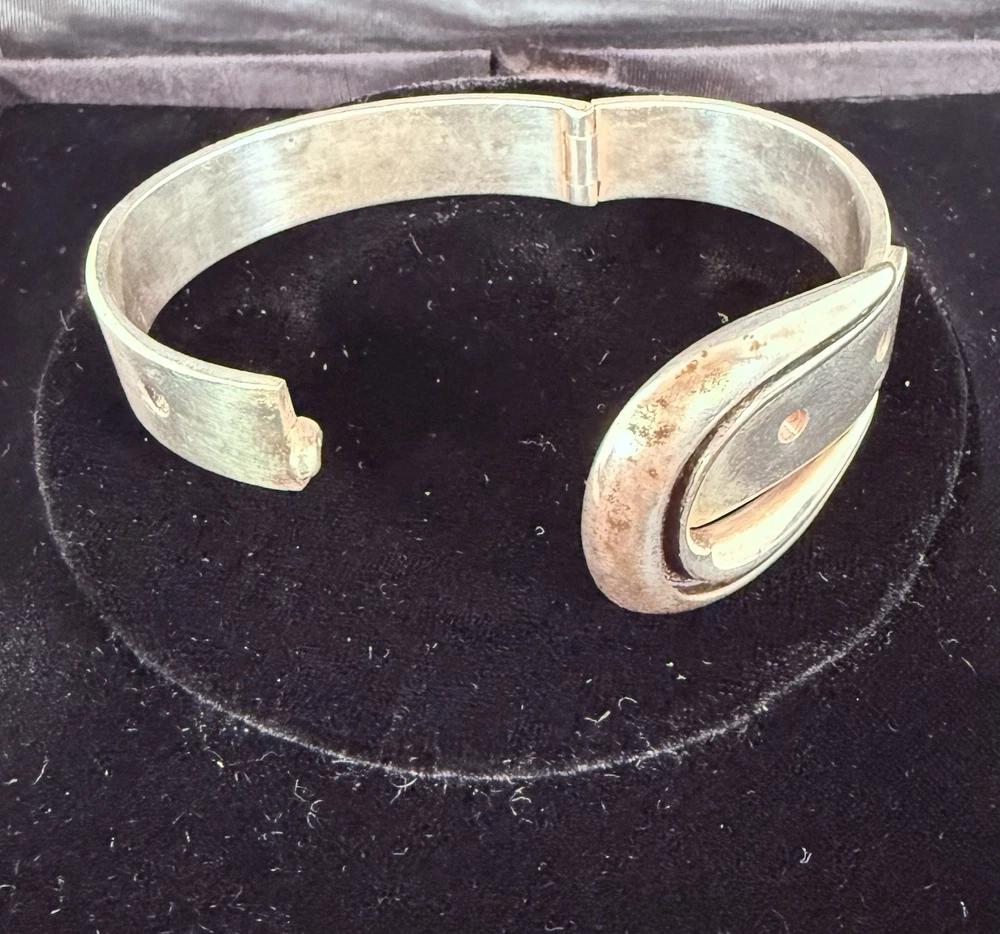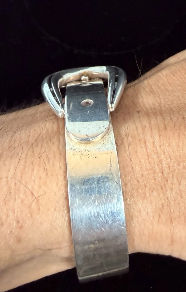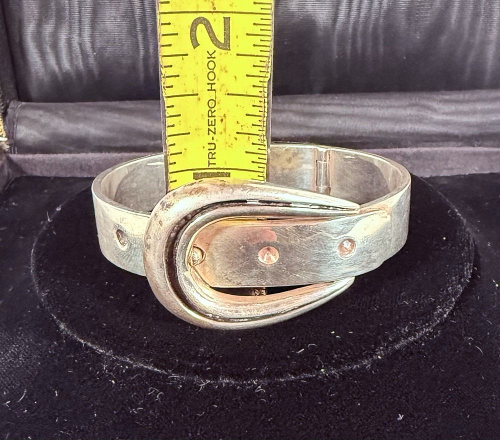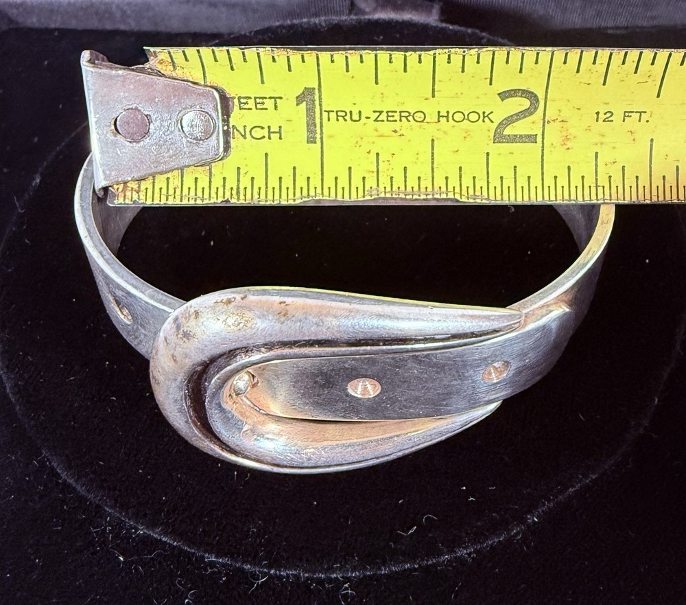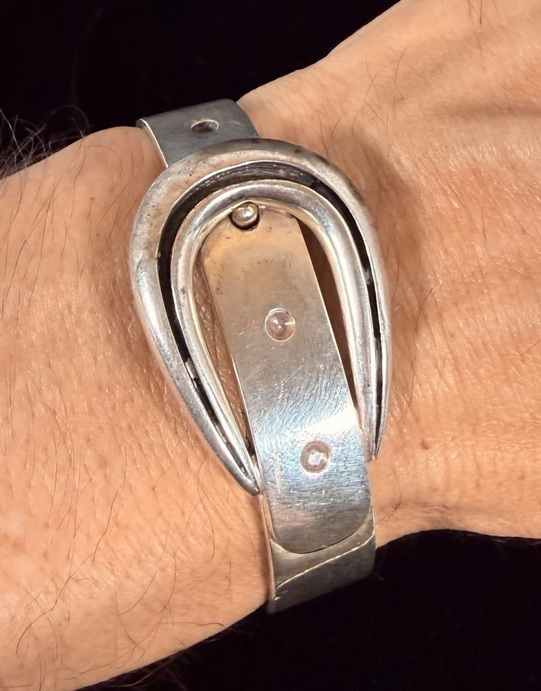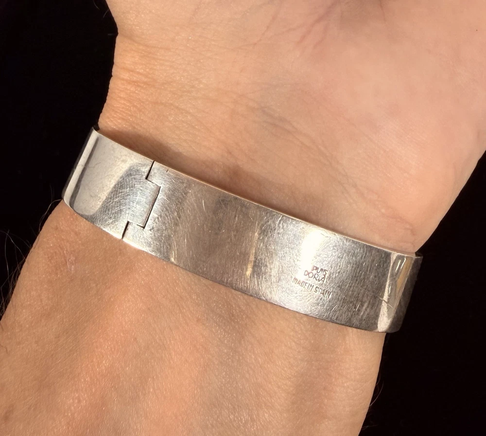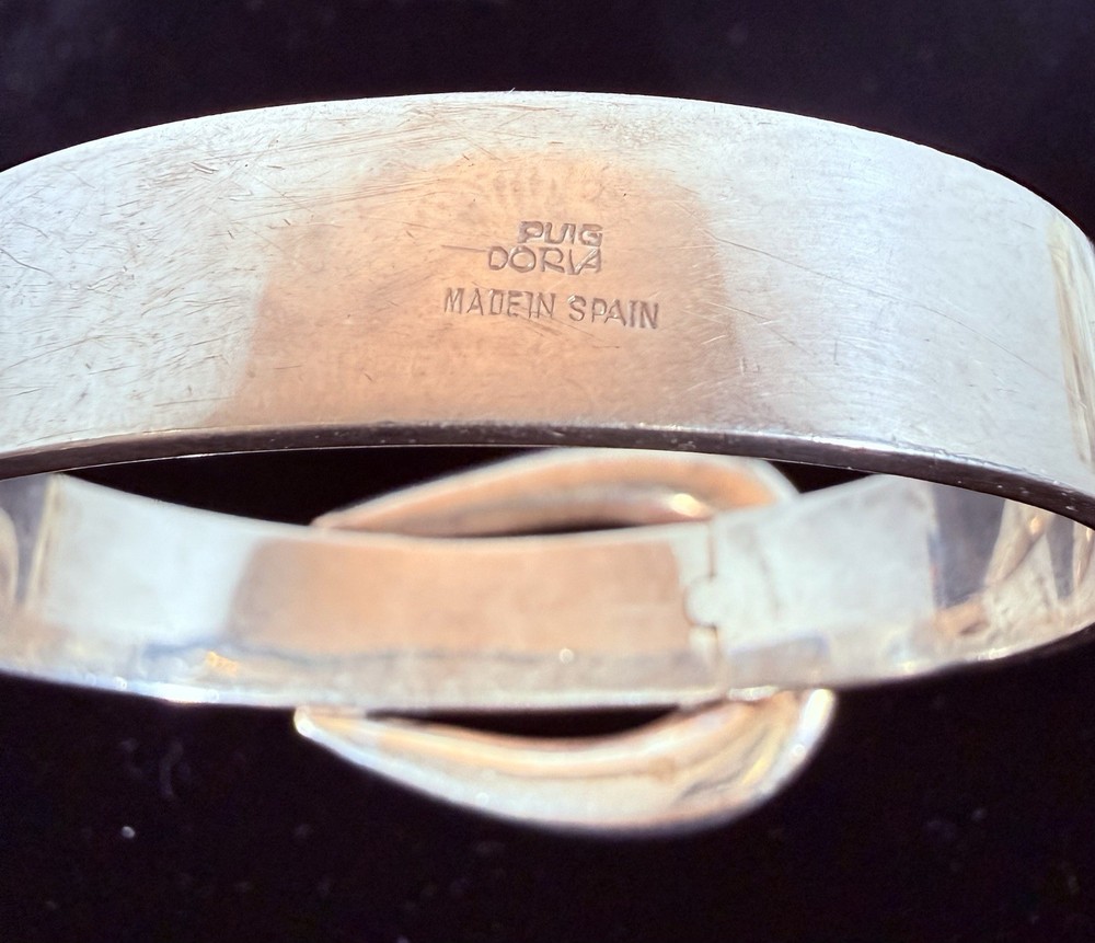Vintage Jose Maria Puig Doria Sterling Silver Buckle Bangle made in Spain. As found in estate condition. No issues and fully functional. Approximate inner circumference is 6.5inches. The piece is solid and weighs in at over 62grams! Founded in 1948 in Barcelona, the brand became a prestigious name in post-war Spanish jewelry, celebrated for its sculptural designs that often treat silver as an architectural material. Great piece for anyone and collectors of fabulous sterling alike! Weight and measurements located in photos. Please review all photos and ask all questions s before bidding. Additional photos can be sent upon request. I do not ship internationally unless enrolled in the eBay international shipping program. I do not accept returns.