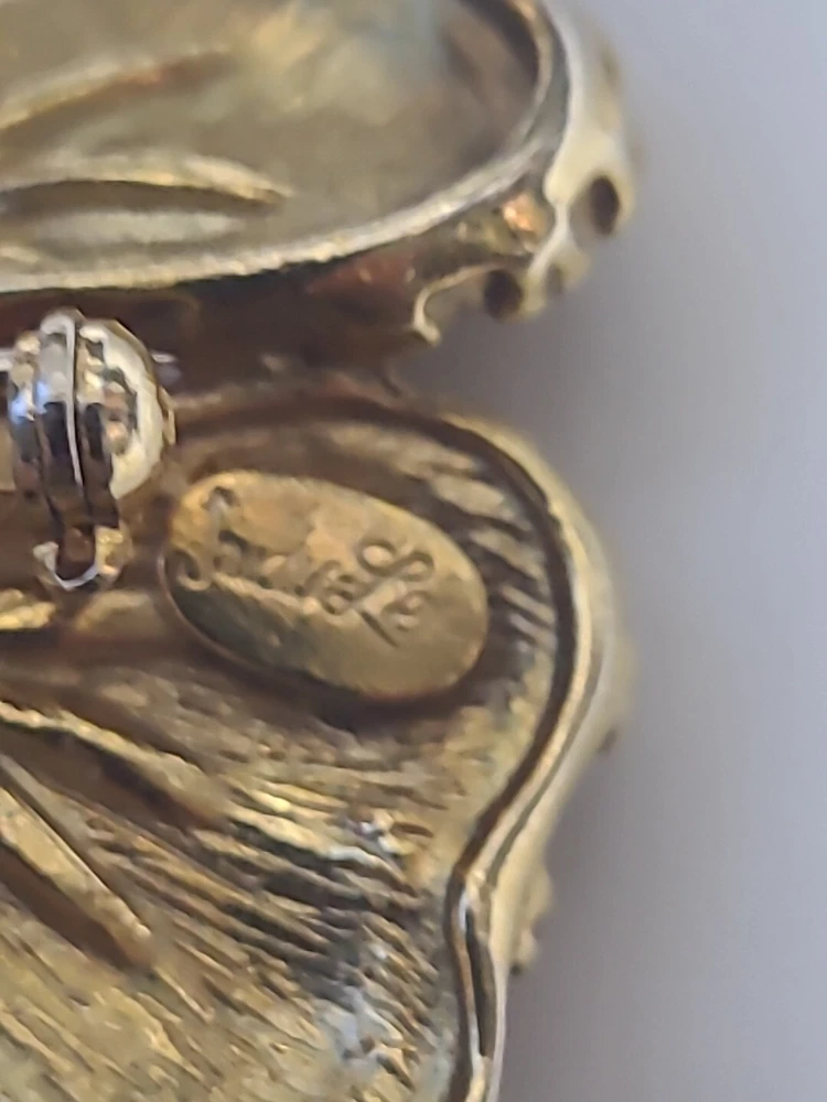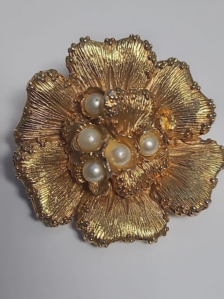 This vintage Judy Lee brooch is a stunning piece of jewelry that is perfect for any special occasion. With its beautiful goldtone base metal and simulated pearl main stone creation, this brooch is sure to turn heads. It's signed by Judy Lee and has a PAT Number, making it a unique addition to any collection. The brooch is perfect for Christmas, Anniversaries, Birthdays, or even Christening ceremonies. Its vintage design is timeless and elegant, making it a perfect gift for anyone who appreciates classic jewelry. This brooch is a must-have for any jewelry lover and will make a great addition to your collection.