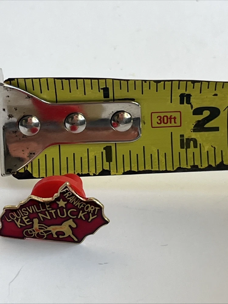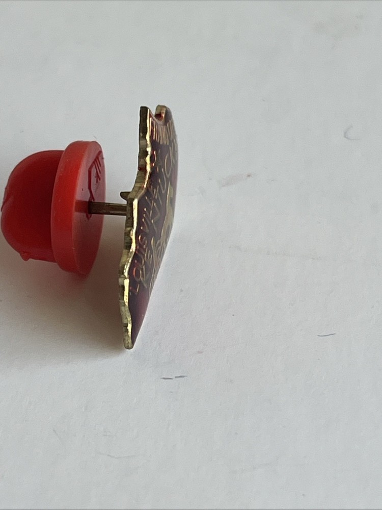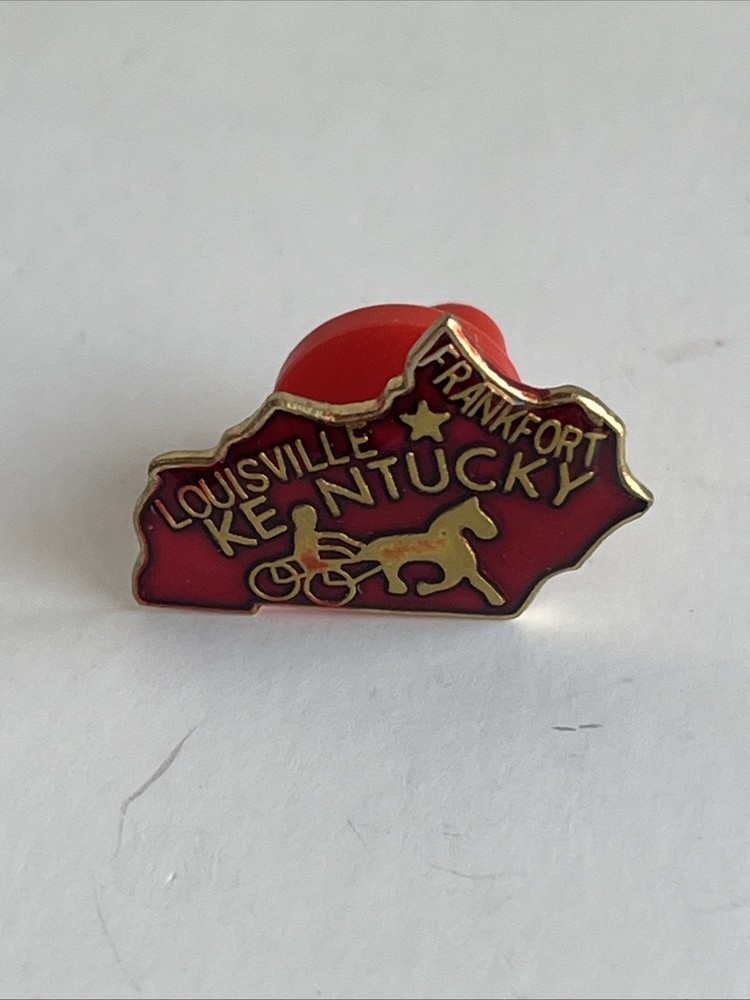 Add a touch of vintage charm to your collection with this classic KENTUCKY state shaped lapel enamel pin. Featuring a striking red and gold color scheme, this piece is a delightful nod to the Bluegrass State's rich history and culture, specifically with its connections to Louisville and Frankfort. Crafted in Taiwan, this pin is not handmade, ensuring consistency and quality in each piece. It's an ideal pick for enthusiasts of collectible pinbacks or anyone looking to showcase their love for Kentucky with a stylish accessory. Whether it's for a jacket, scarf, or backpack, this lapel pin is a subtle yet elegant way to carry a piece of state pride wherever you go.
