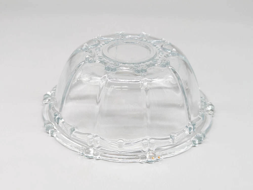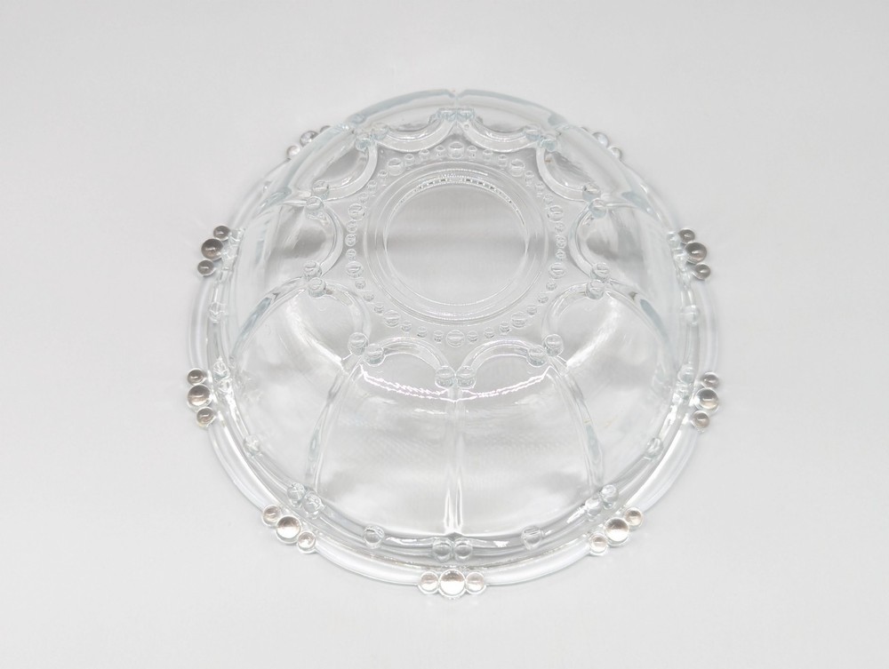Vintage KIG Indonesia Beaded Clear Glass Elegant Candy Dish Bowl 7" No Lid Measurements - 7" x 2.5" - Weight 1 lb