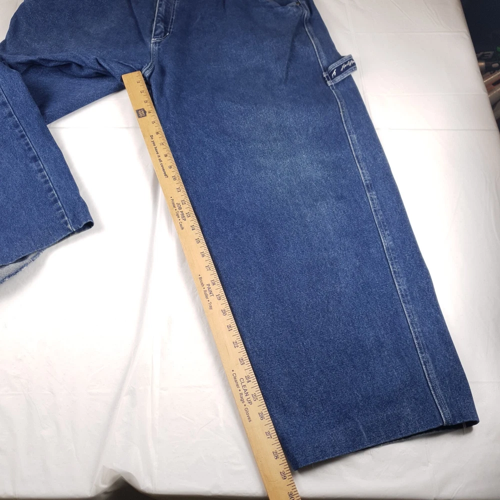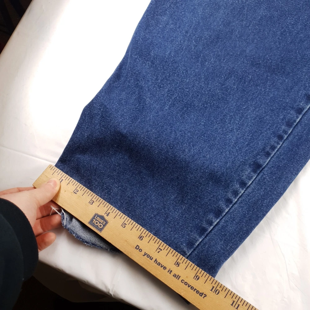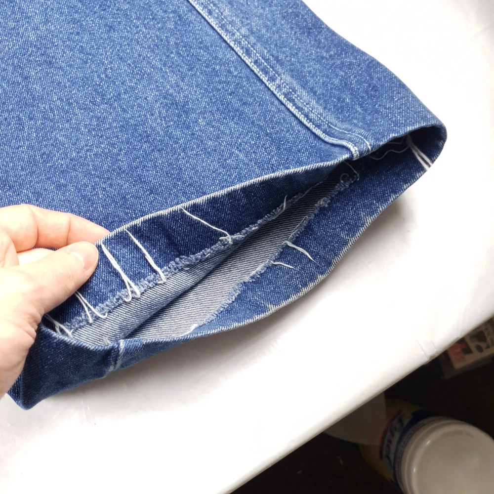 Original owner cut and glued the bottoms to hem them see pics one side is becoming unglued/sewn. Tagged size 42x34 measures 40x28 see photos for measurements to determine proper fit before buying. Thanks.