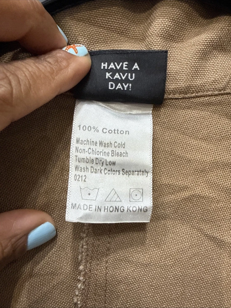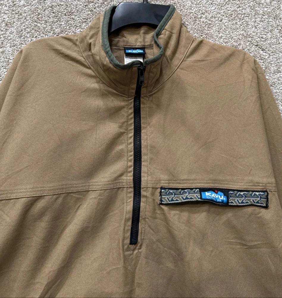 Very good, no holes or stains. Pre-Owned, Ships USPS Ground Advantage. Vintage Kavu Jacket Mens Sz Large Brown Canvas 1/4 Zip Pullover Hiking Workwear