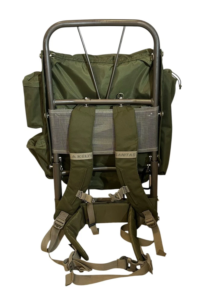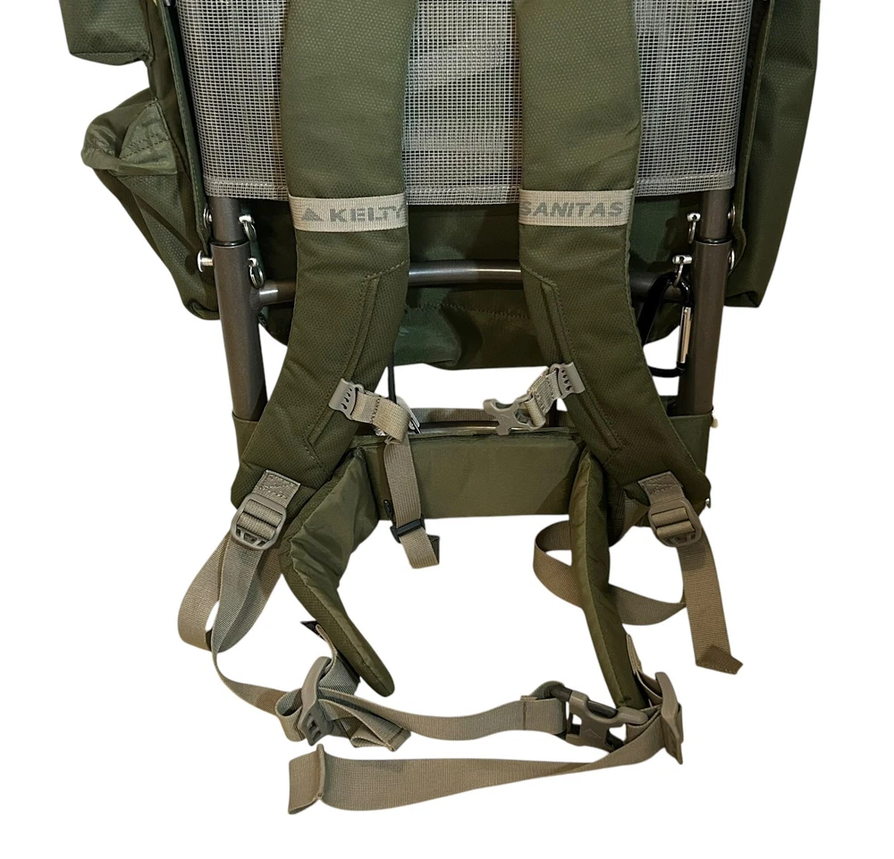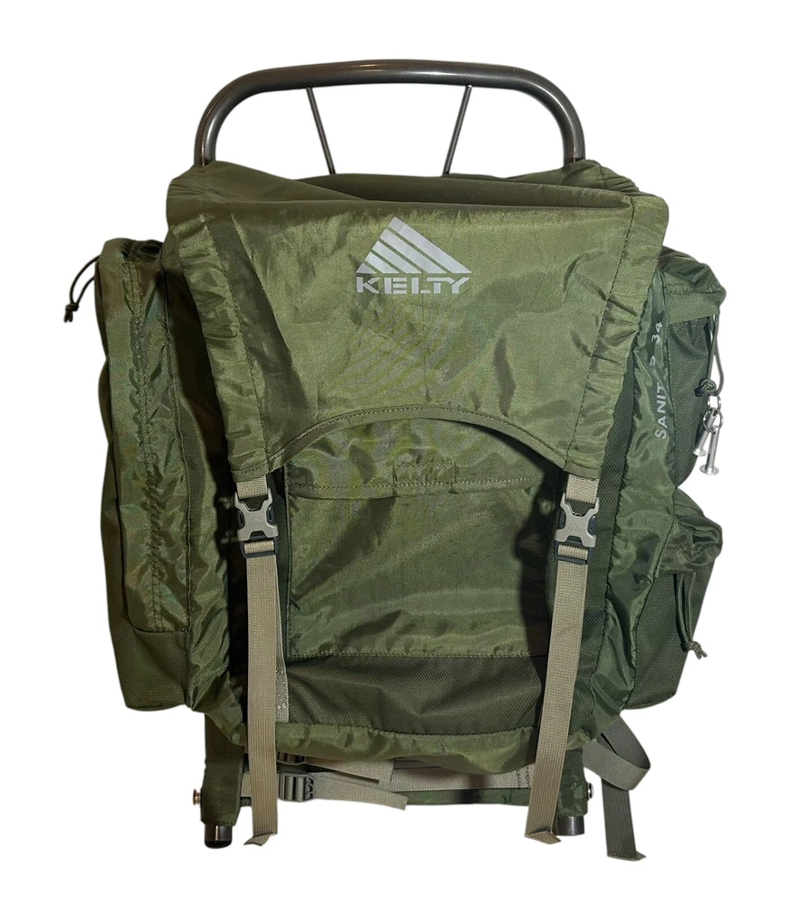 Features: Adjustable Size, External Pockets, Hip Belt, Lightweight, Padded, Padded Straps Event Type: Outdoor Adventure Number of Pockets: 4 Type: Shoulder Bag Material: Aluminum, Metal, Nylon, Synthetic Model: Sanitas 34 Brand: Kelty Event: Hiking Sport/Activity: Hiking Color: Green Vintage: Yes Size: Medium Department: Unisex Adults Closure: Zip Frame Material: Aluminum, Metal Item Height: 31 Inches