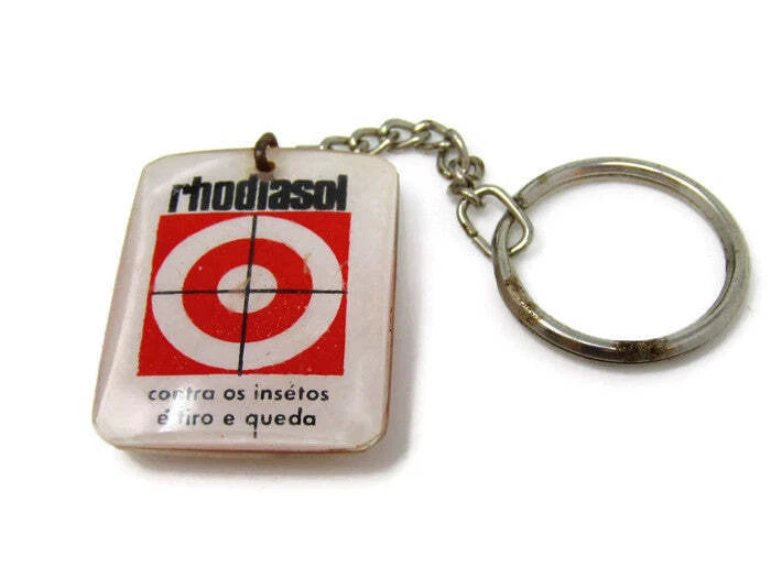 Vintage Keychain: Foreign Brazil Rhodiasol Insecticide Bug Killer (Please see pictures for condition, many of these vintage keychains have oxidation and wear) .
