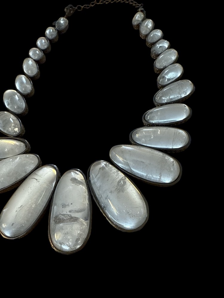 The Vintage Kiam Family Rock Clear Crystal Hematite Statement Necklace is a stunning piece of fashion jewelry that features a clear crystal hematite main stone in a silver setting. This unique necklace is signed by the brand and has a lobster closure, making it a stylish and high-quality accessory for women. With a statement style and beaded design, this vintage necklace is a standout piece that will add a touch of elegance to any outfit. Length: 16", able to make shorter 🌟 Please note I am a veteran seller of 17 years under (TheChic_SheShed) I opened this account to move my jewelry to, as I closed my etsy shop. So please do not mind the little feedback. Check out my other account. If you have any questions please ask 🌟