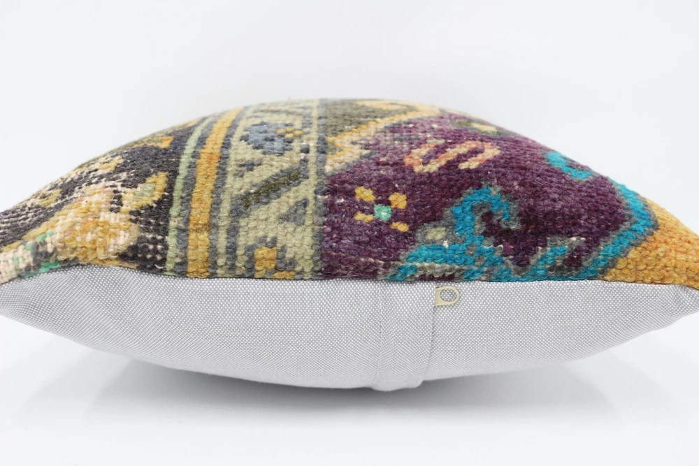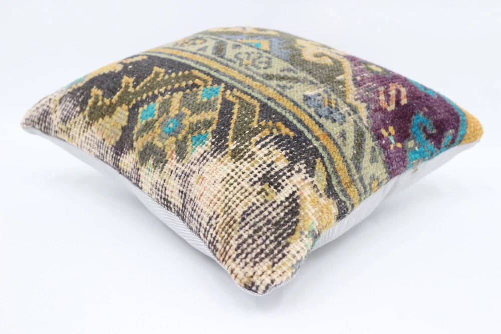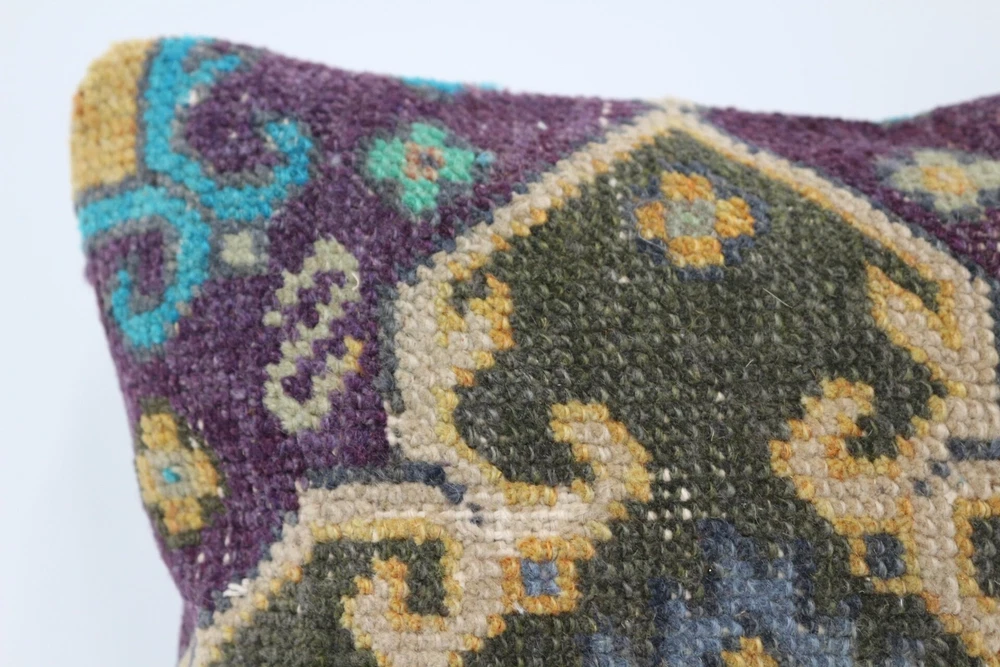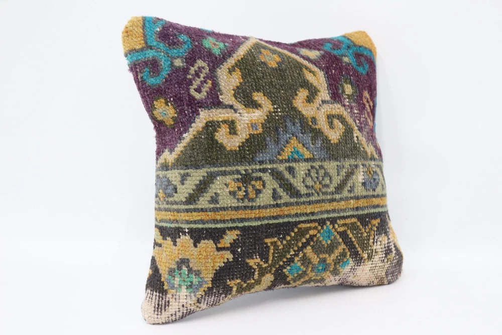 Vintage Kilim Throw Pillow, 14"x14" Purple Pillow Cover, Turkish Kilim Pillow