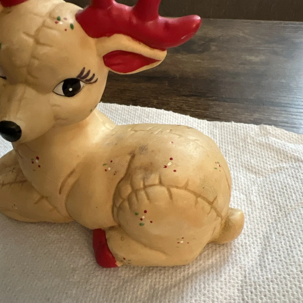 Vintage Kimple Mold Quilted Ceramic 5x5" Christmas Reindeer Figurine. Condition is Used. Shipped with USPS Ground Advantage.