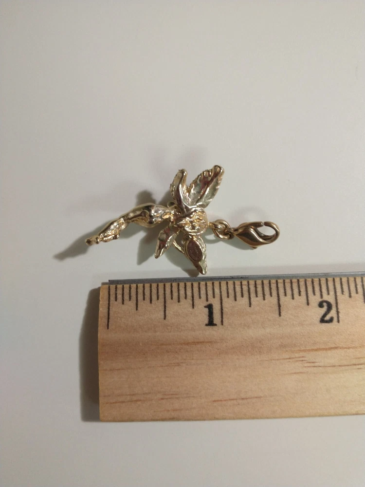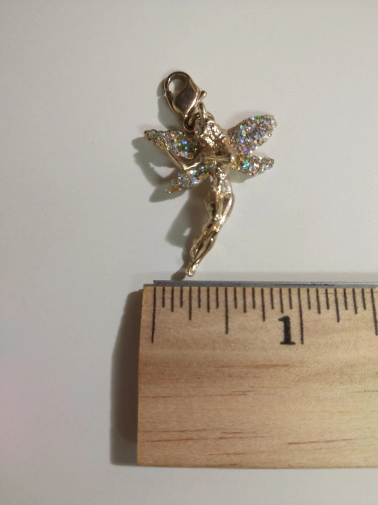 Please see images for size and condition description. Kirk's Folly gold tone fairy charm w crushed AB crystals. No missing stones and no verdigris. Lobster clasp in good working order. Great for a charm bracelet or to wear on a necklace. As is. Thanks!