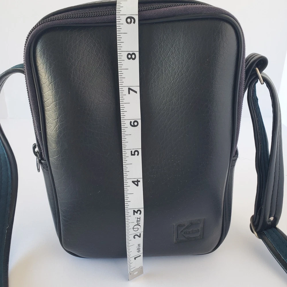This vintage Kodak camera bag case is the perfect accessory for any camera enthusiast. The black exterior is accented with a soft blue interior, providing a stylish and functional storage option for your camera and accessories. The case is made of durable vinyl material and features accessory compartments to keep your gear organized. The bag is compatible with universal camera brands and is designed to fit most camera types. It's the perfect addition to your camera gear, providing a stylish and functional storage option for your camera and accessories.