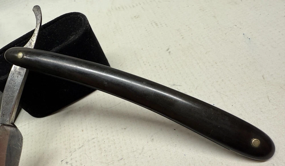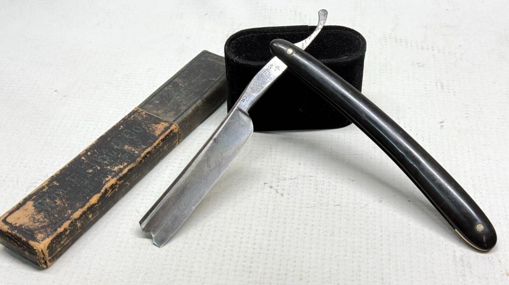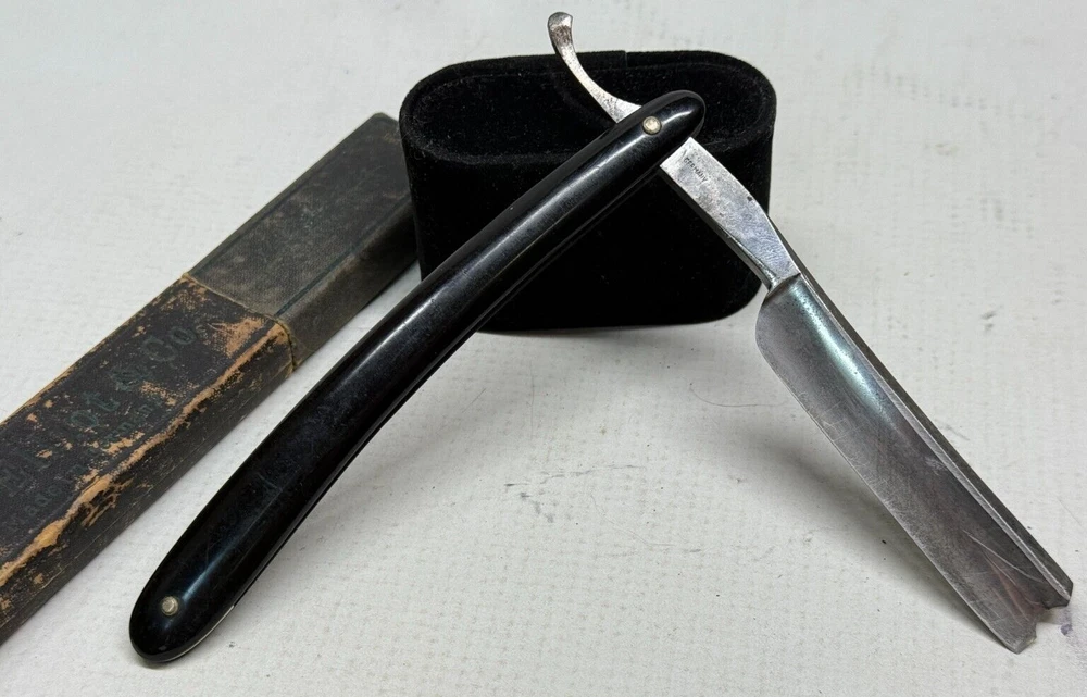 Really nice razor, thick blade, I do not believe the box goes with the razor as it has a different brand name on it, however it is likely from the same time period. Would be welcome in any vintage straight razor collection. Feel free to ask any questions! *Disclaimer* Items are sold as is. Please take it upon yourself to make the best judgment as to the quality of the images/item before you purchase. The photos are exactly what you’re purchasing. *Information Regarding Handling* Once the high bidder purchases and pays for item. The item will be shipped out same day, within 24 hours, or the latest within 48 hours. If you have any questions or issues regarding your item, please contact us as it is crucial for customer satisfaction! Thank you. In Multiple orders shipping can be combined together to reduce shipping cost. Make sure to get in contact with us to make this happen Orders over $200 will be shipped with a signature required upon delivery and will be insured.