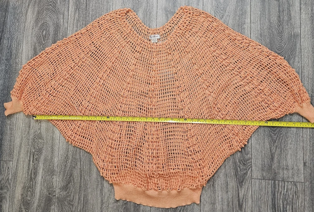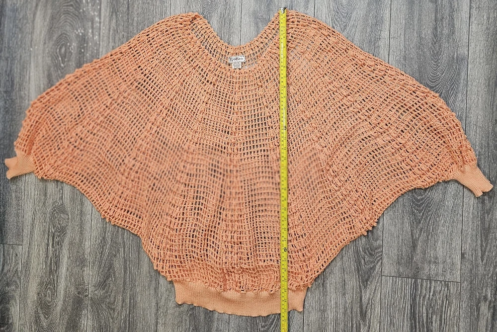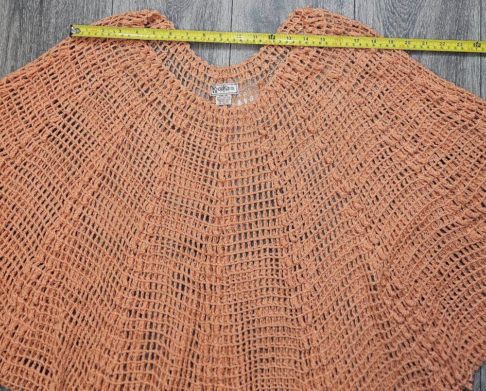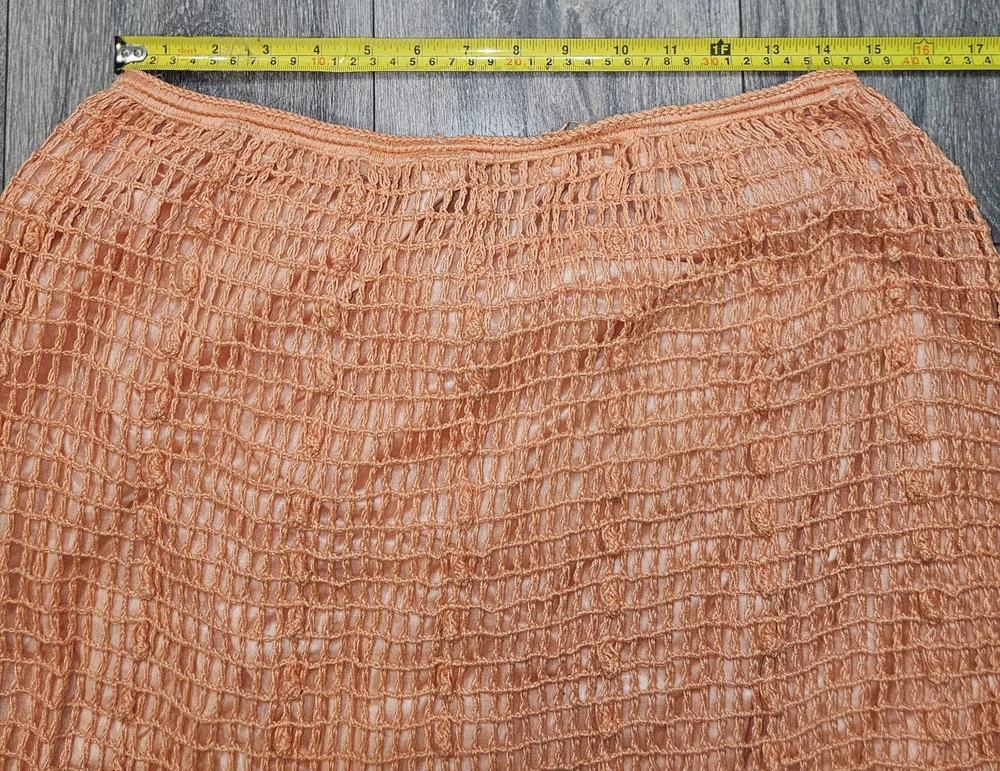 The Vintage Kyouko Design Studio Crochet Knit Set in Coral features a wide top with a lined skirt in size XL. This 2-piece set is perfect for activewear, with a pullover closure, crew neck, and bat sleeves. Made of 100% cotton, this handmade outfit is ideal for summer, fall, and spring seasons, showcasing a solid coral color with crochet accents. The relaxed fit and beach theme make this designer set a stylish choice for women looking for a unique crochet outfit.