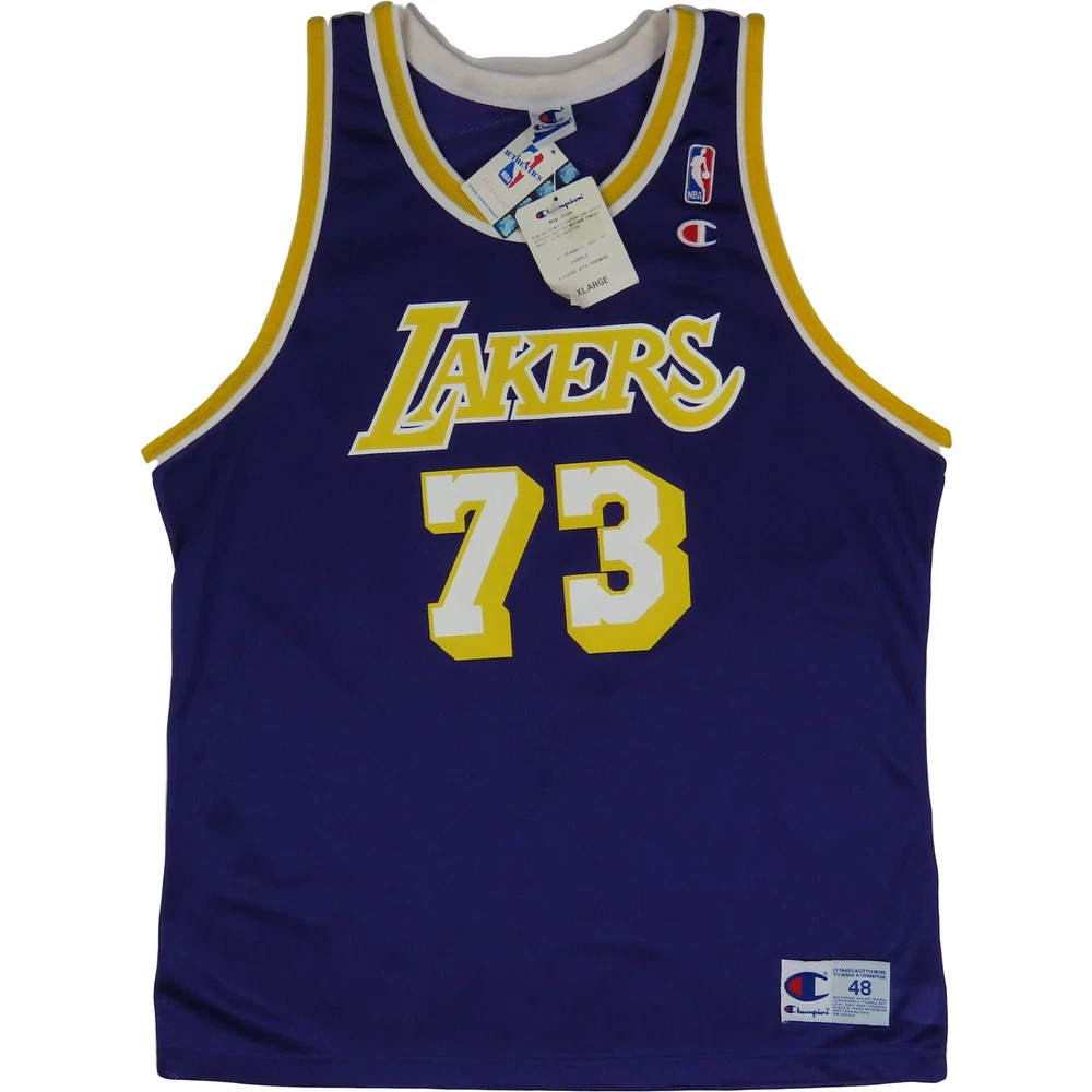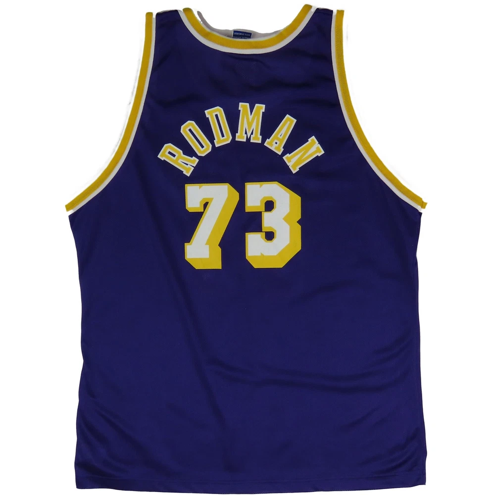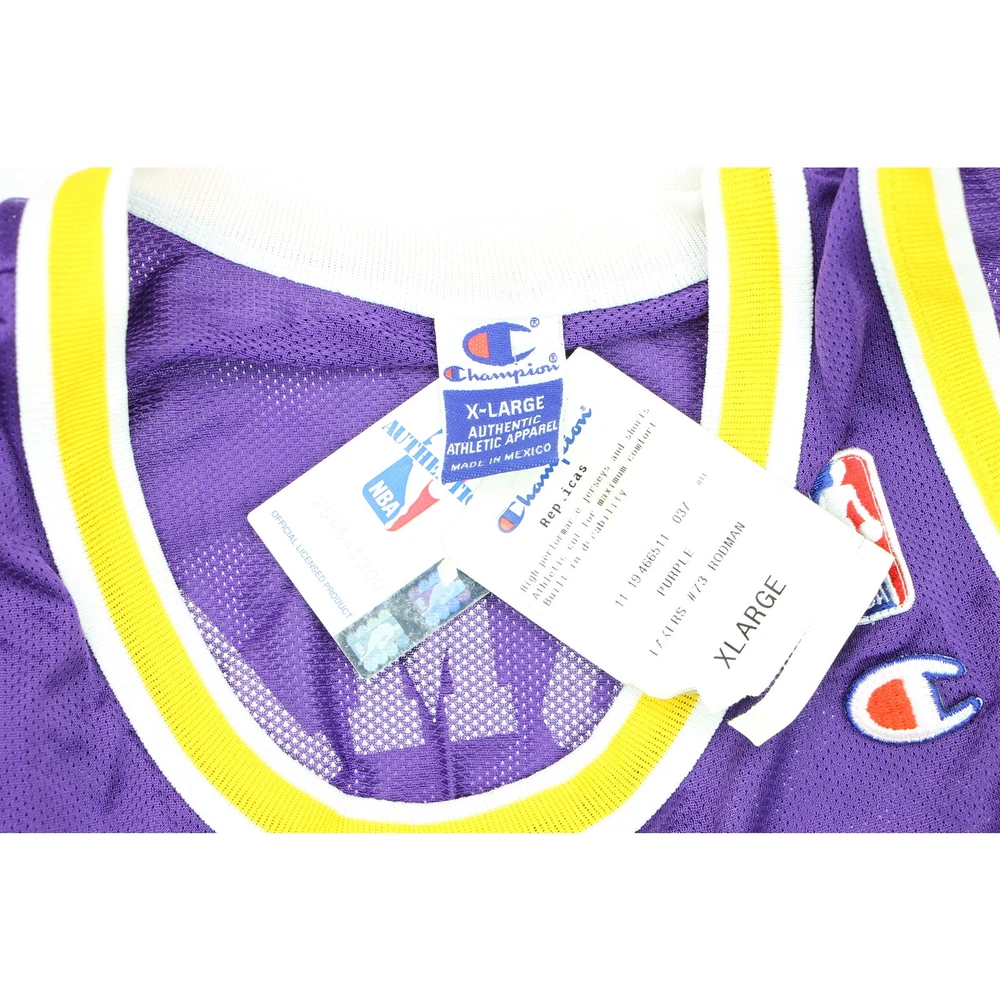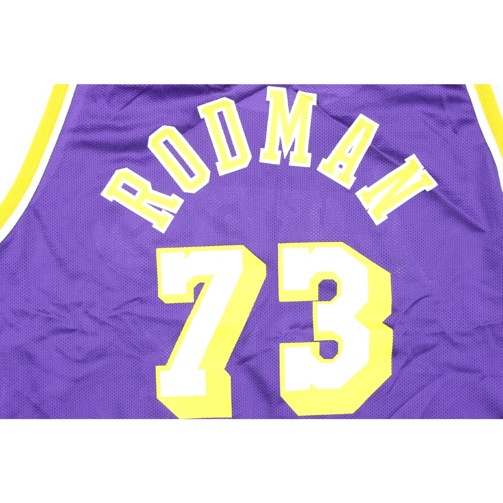 Immerse yourself in NBA history with this Vintage Los Angeles Lakers Jersey, featuring #73 Dennis Rodman. In striking purple and size XL, this Champion jersey is a collector's dream. It's a tribute to the era of Kobe, LeBron, and 'The Last Dance'. Unworn and deadstock, this piece is not just sportswear, it's a slice of basketball legacy. Perfect for fans and collectors who cherish the golden era of the NBA. Vintage Los Angeles LA Lakers 73 Dennis Rodman Purple Champion NBA Basketball Last Dance Kobe LeBron Jersey 48 XL Deadstock Unworn material:100% nylon made in Mexico dead stock printed numbers the numbers in the back have some cracks, see picture size on tag:48 XL mannequin is a size medium armpit to armpit:24 length:33 #14922 8l4n4