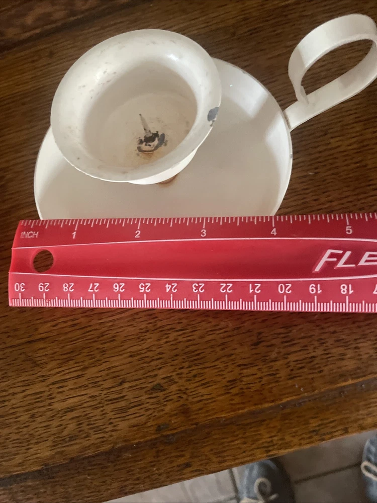 This vintage LENOX Candle Holder features a French Country style, with a solid round design in white metal. It is suitable for all occasions and both teens and adults can appreciate its elegant design. The candle holder includes a finger loop for easy carrying and has a 1.5" diameter, perfect for chamber drip candles. Care for this piece is easy, making it a convenient and stylish addition to any decor. As is as shown -usage. Ask any needed questions:)