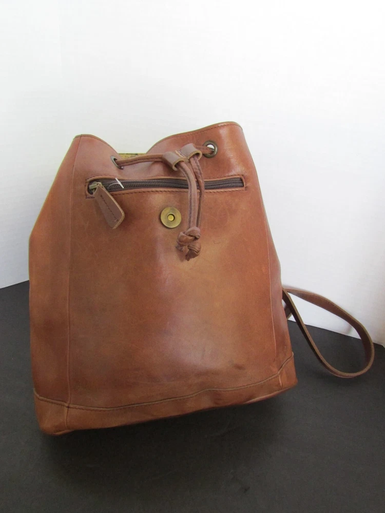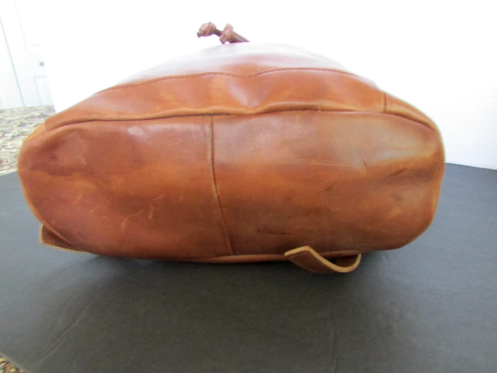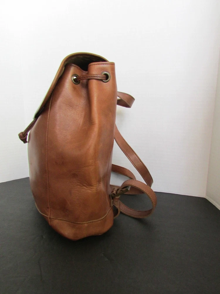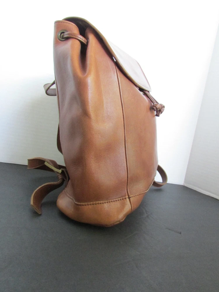 Vintage LL Bean Brown Leather Drawstring Backpack Rucksack Handbag