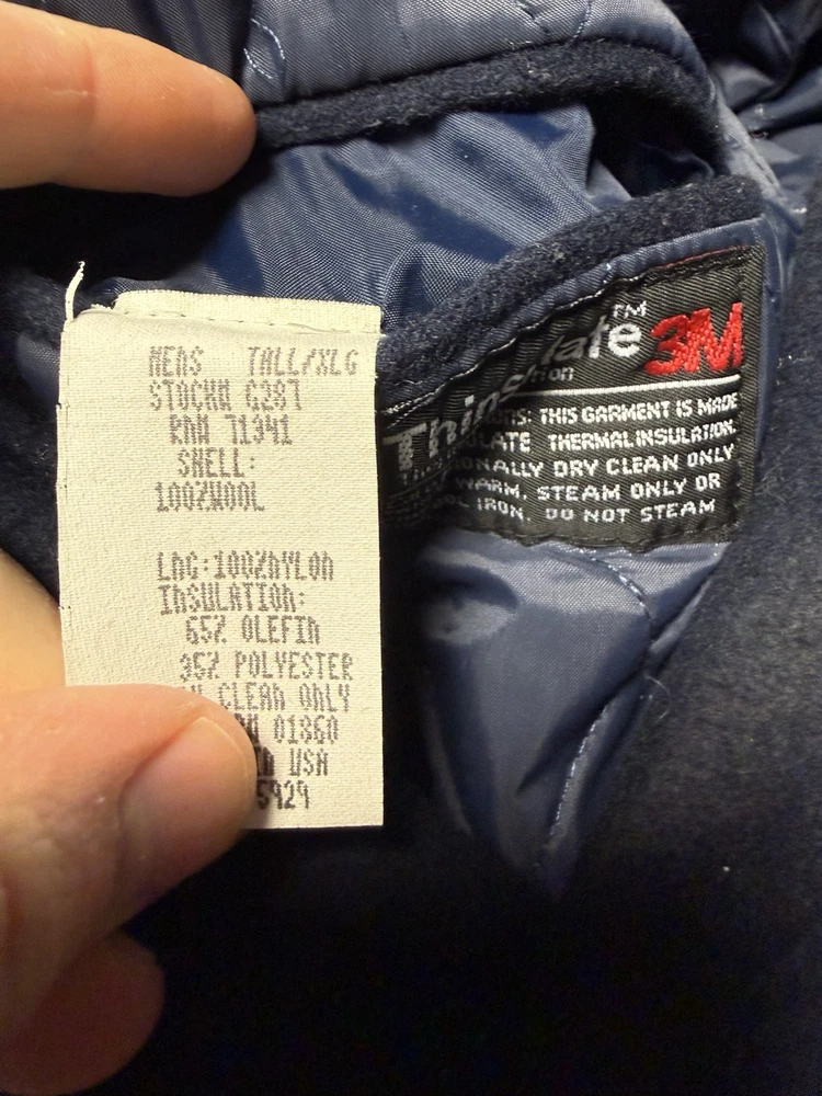 This vintage LL Bean men's blue wool insulated sport coat blazer jacket in size XL Tall is a timeless piece with a solid pattern and mid-length design. Made with high-quality wool and featuring a button closure, this blazer is perfect for chilly days in style. The jacket also includes polyester insulation for added warmth, making it both practical and stylish. With a classic USA-themed design and crafted in the United States, this blazer is a must-have for any man looking for a rugged yet sophisticated outerwear option. See photo for flaws.