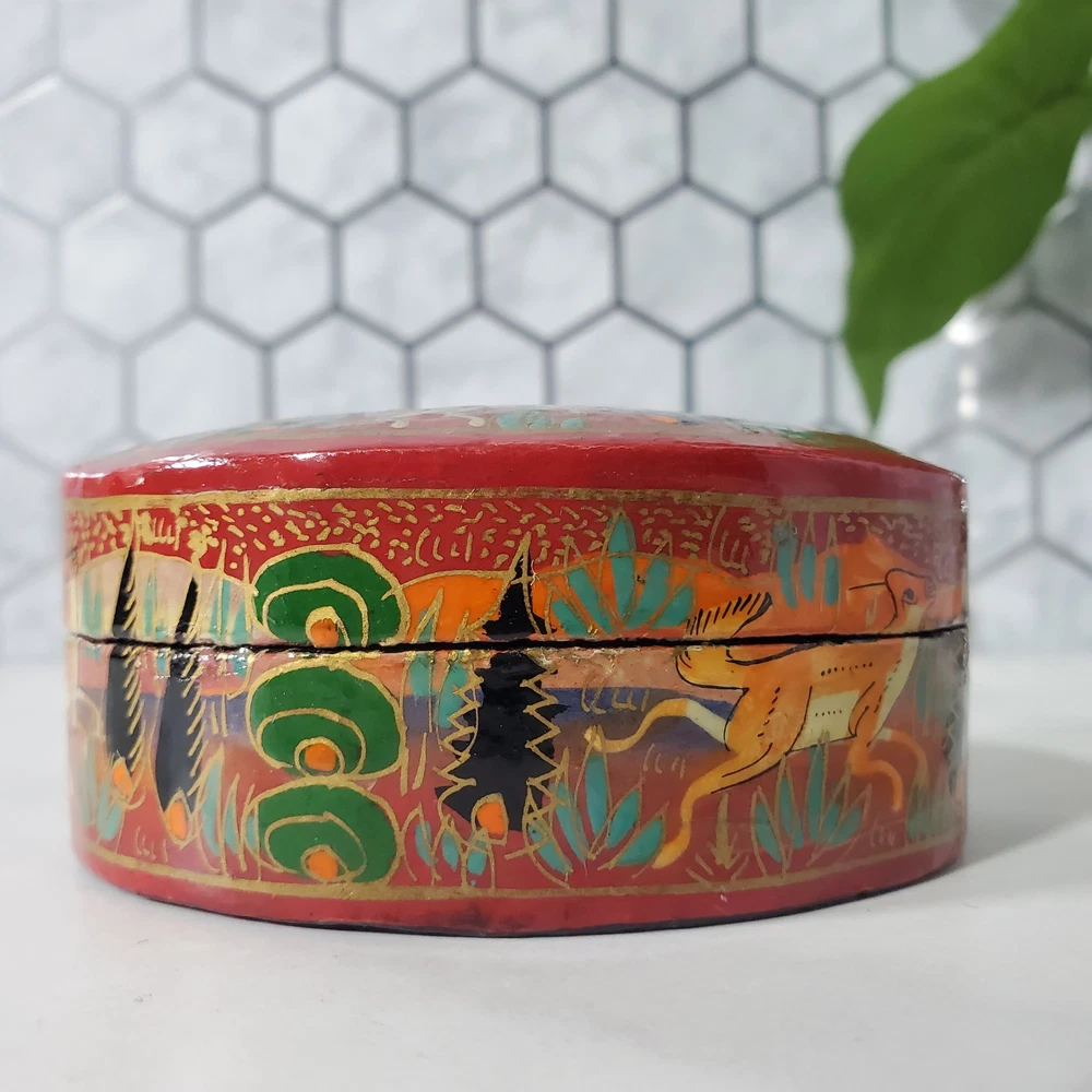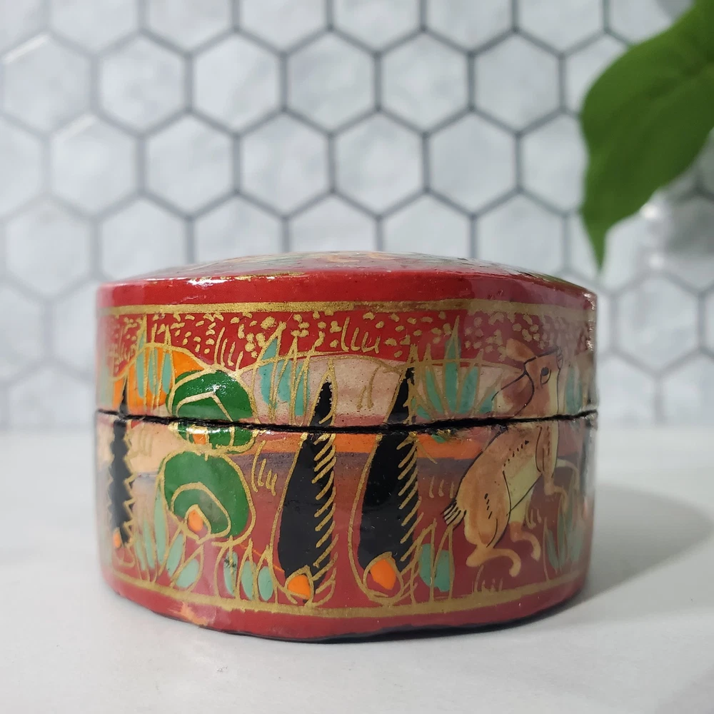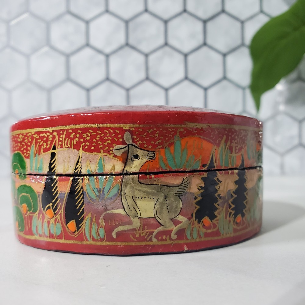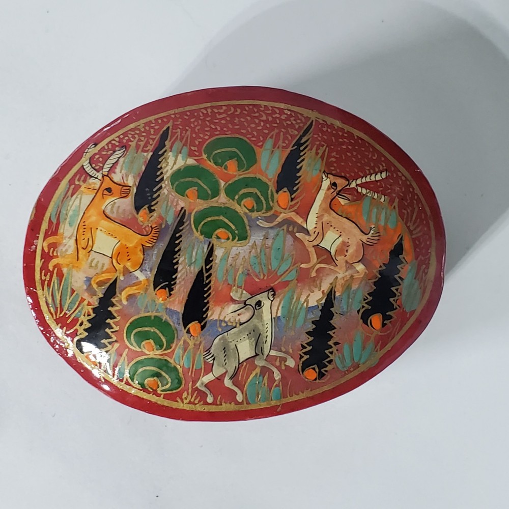 Vintage Lacquer Hand Painted Running Deer Burnt Orange Trinket Box In good condition Please view all photos for condition and measurements Thank you for viewing our products. PRODUCT SOLD AS IS. Please Message With Questions Prior To Purchase. If you have an issue with any of our items please reach out to us prior to contacting eBay. Thanks! Please note: We do sell new and used items. Our used items are pre-owned / pre-loved & may show signs of wear. Please view all photos for details, size, & imperfections as they are a form of the descriptions in addition to what is stated in the description section. We will do my best to inspect each item to find the best quality items possible. We do not include/replace batteries in any of our items unless they have been supplied by the manufacture and are in new unused condition. If an item is sent to you NEW / SEALED and you open it or remove the tags, it is NO LONGER ELIGIBLE FOR RETURN. Opened items / Removed tags - Means the item is NO LONGER in its original state and can no longer be sold as NEW. -Thank you for your understanding We are often asked about shipping cost. We are excited about your purchase and take pride in your package arriving to you undamaged . We wrap and cushion all necessary items prior to shipping which adds weight to your package. Unfortunately, this is not optional. Thank you for your understanding. We do not accept returns or issue refunds however in the event we do accept your return or issue a refund we do not reimburse your original shipping fee. Due to how eBay handles international shipping we do not accept any international returns. Thanks again!