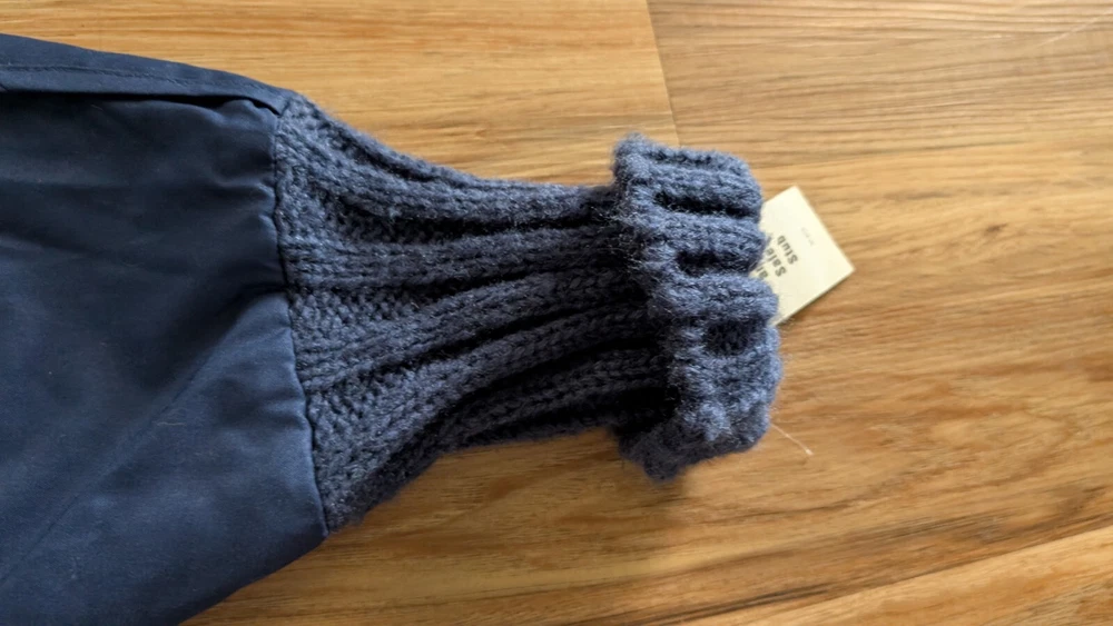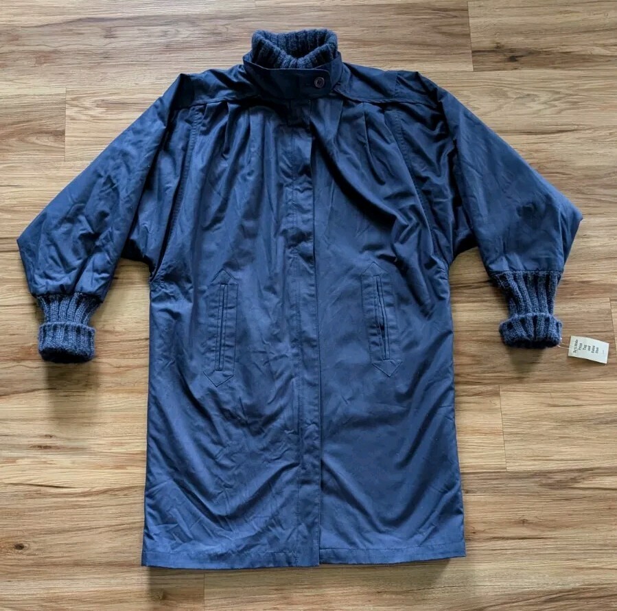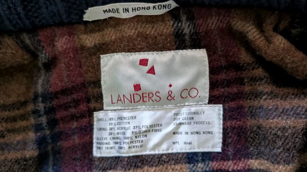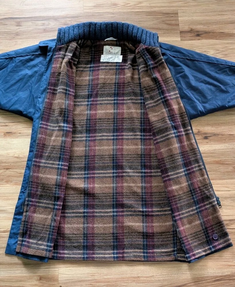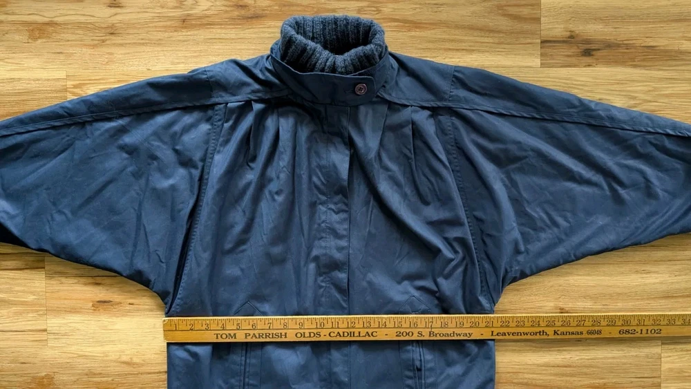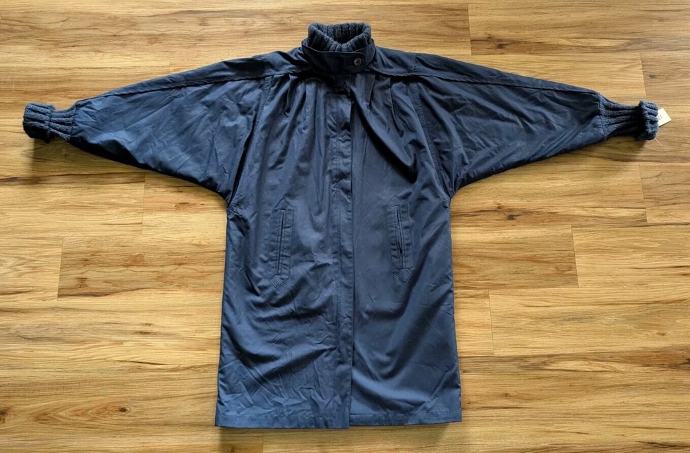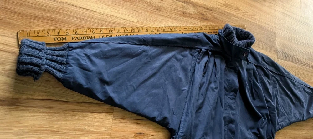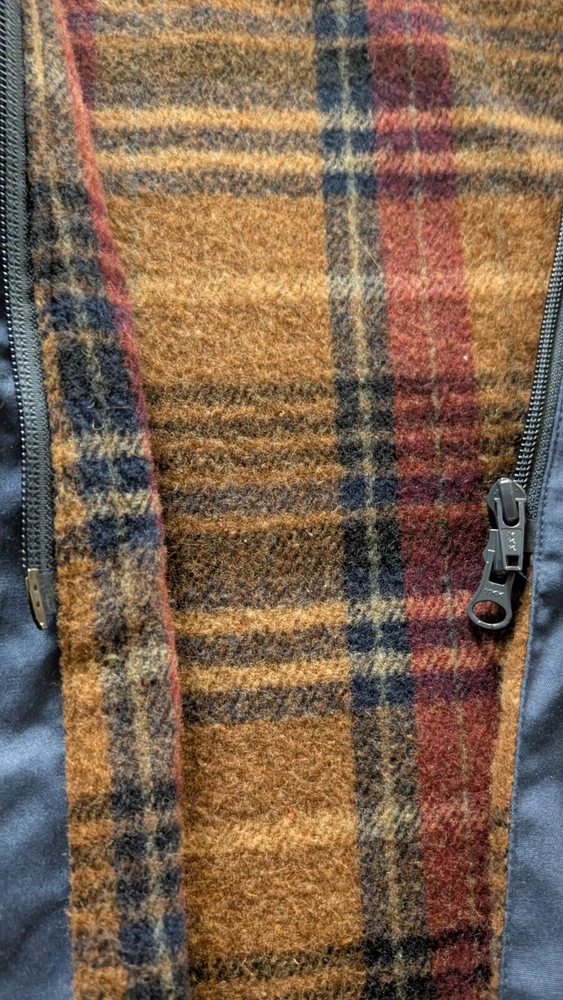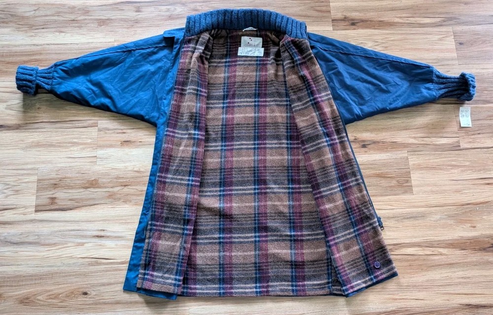 New with tags, but the size tag has been removed. Laid flat, the chest measures approx 21 inches & the length is about 36 inches. This is an XS in this brand! I have the same jacket in maroon listed tagged size XS that measures exactly the same. Although, it does appear to fit a bit oversized. Cozy plaid liner! Some imperfections to the knit sleeves & the made in Hong Kong tag is no longer attached on one side as pictured.