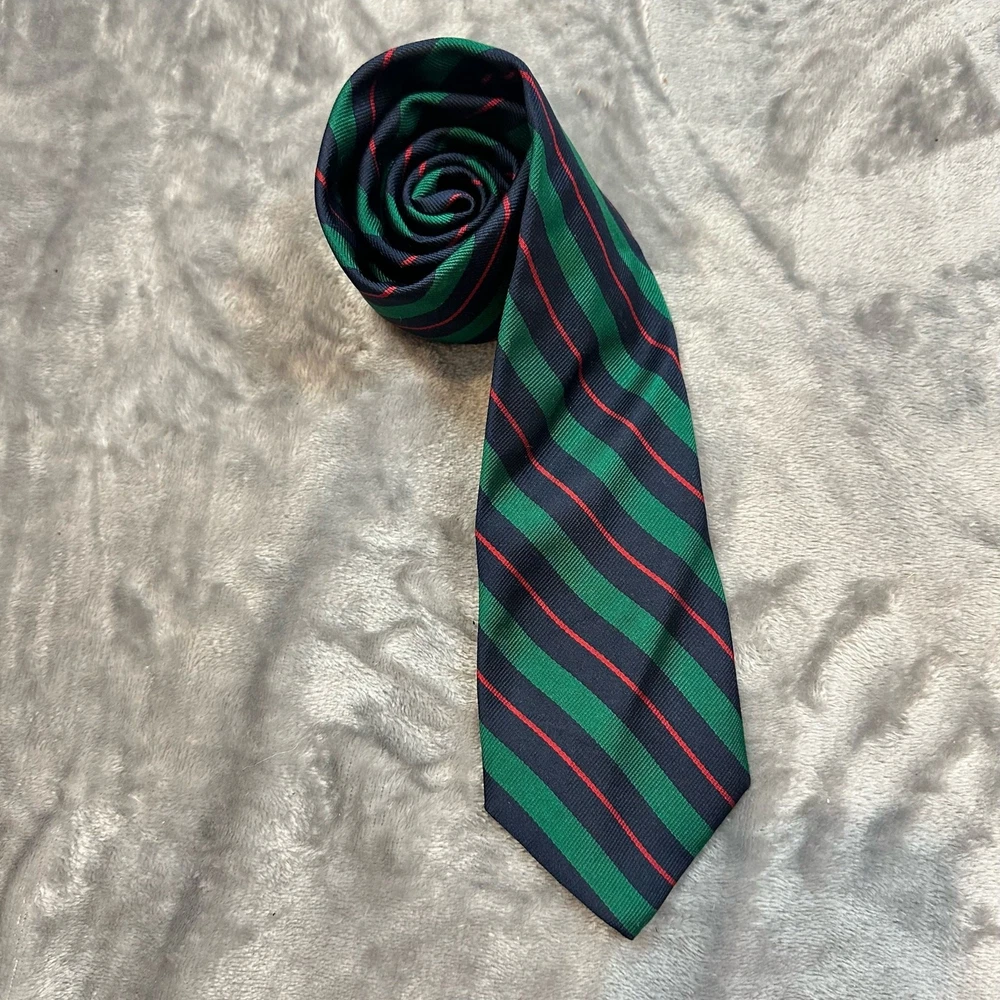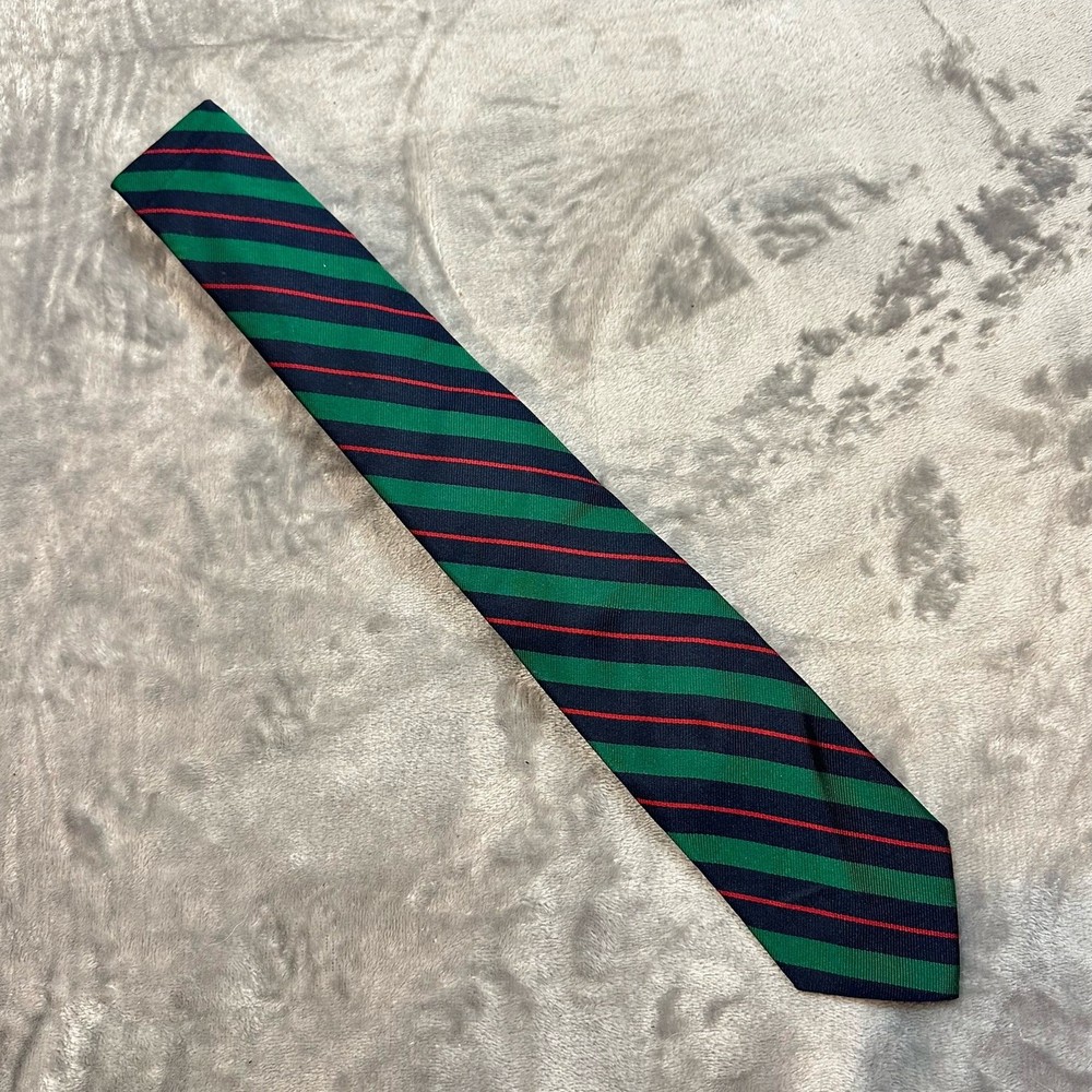 Vintage Lands' End Silk Tie Charter Collection Diagonal Stripe Green Navy Blue Red Preppy Great condition, no flaws. Length ~56"