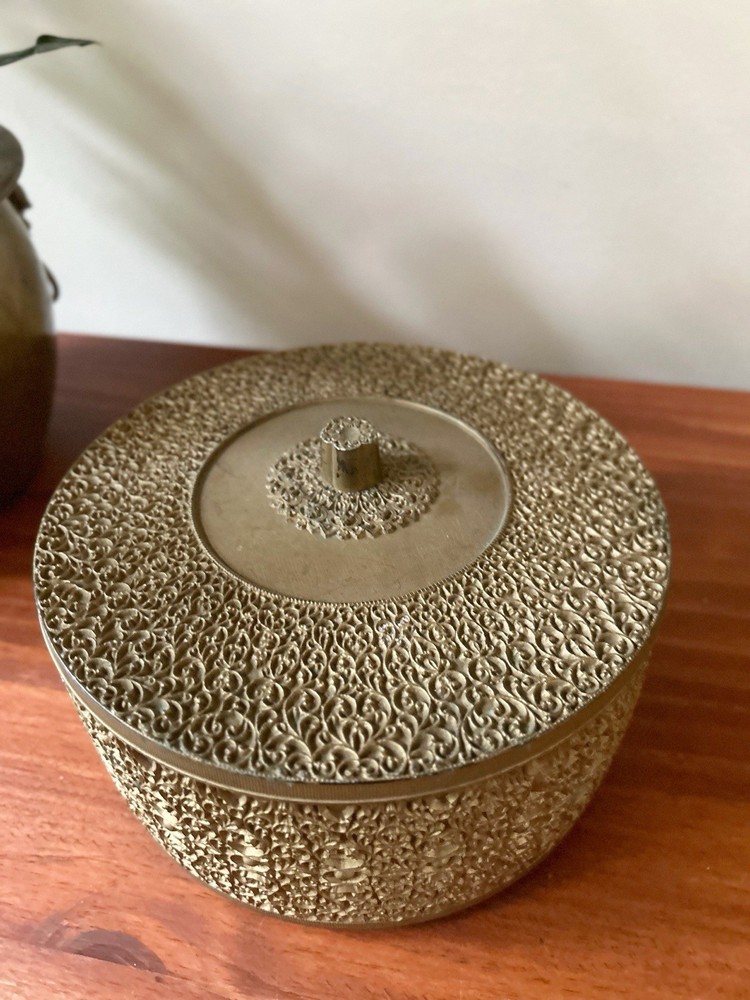 Vintage Brass Oval Fruit Embossed Trinket Box with Lid