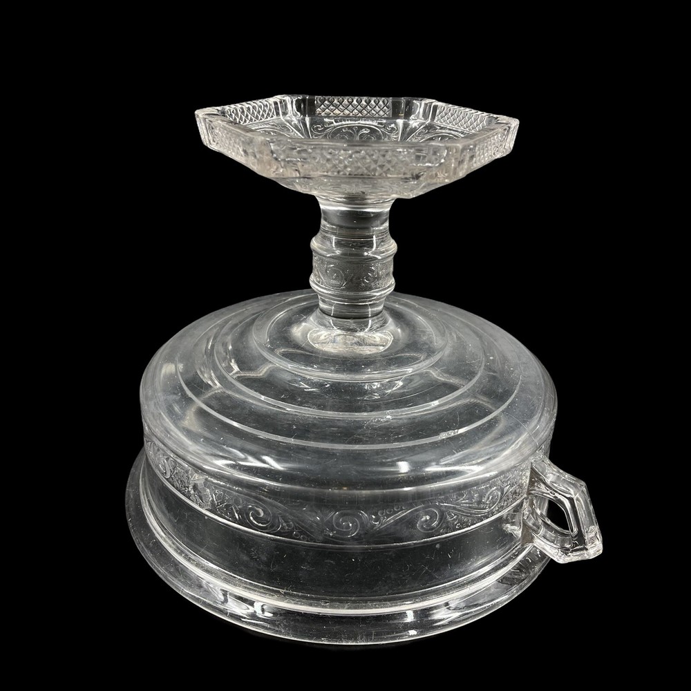 Vintage Lancaster Marigold Candy Dish with Lid and Clear Pedestal Glass Base