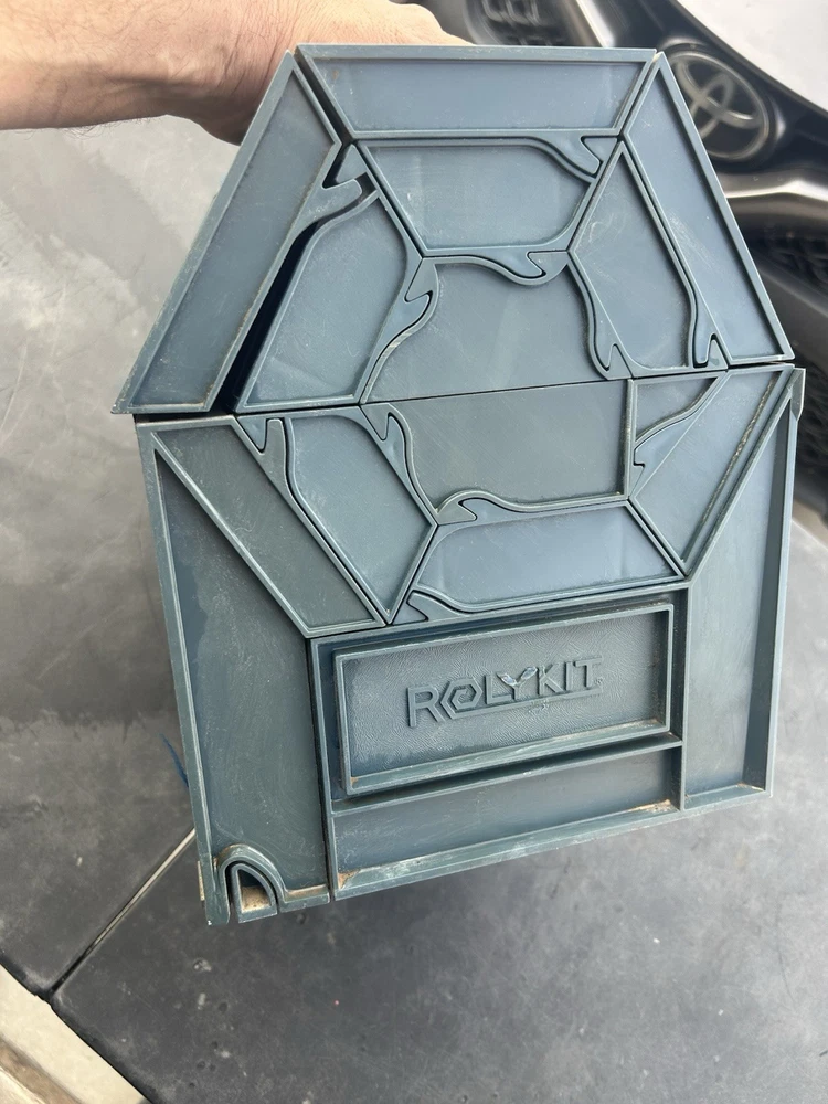 The Vintage Large Rolykit Roll-Up Storage Box Organizer is a versatile container made of durable blue plastic, perfect for organizing crafts, lures, knives, and other items in your home. With its free-standing design and foldable feature, it is easy to use and store. This item hasn’t ever been used, this item still has the dividers in the plastic bag with the manuals. As seen on TV, this original Rolykit Roll-Up model is 10.75 inches in length, 12 inches in height, and 10.5 inches in width, providing ample space for your storage needs. Whether you need to organize jewelry or other items, this large storage box is a practical and stylish solution for your home.