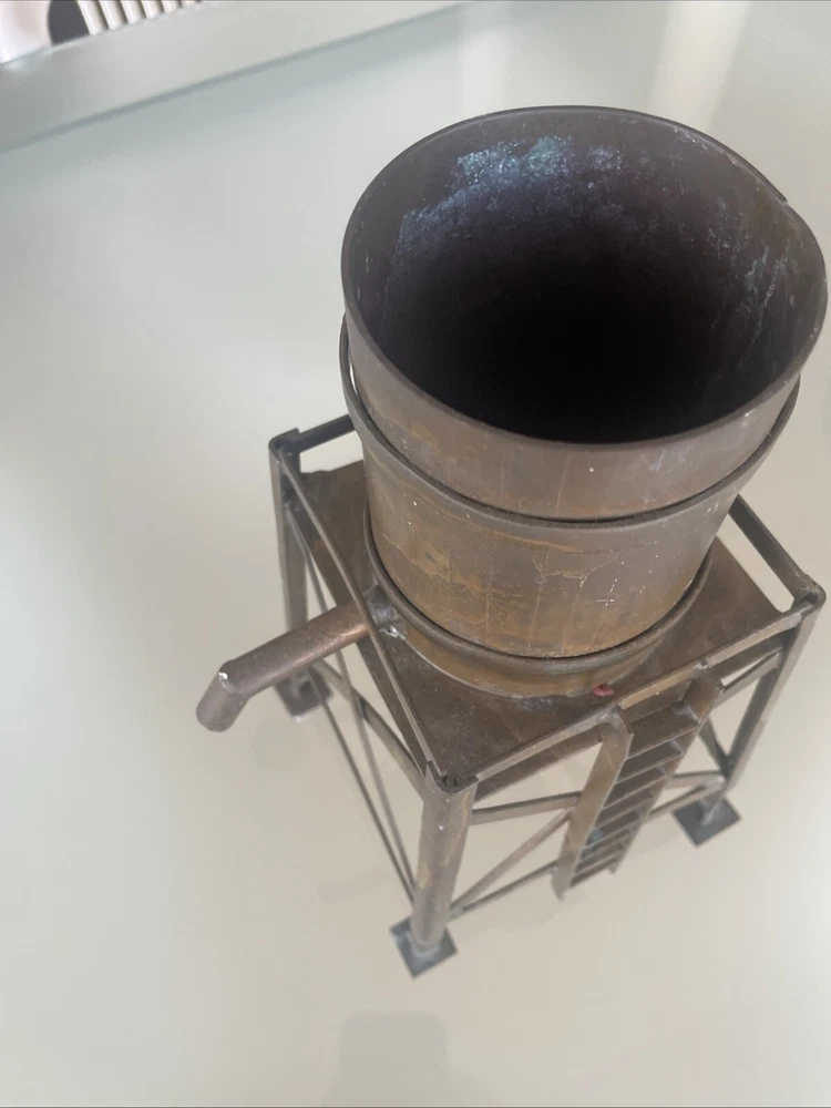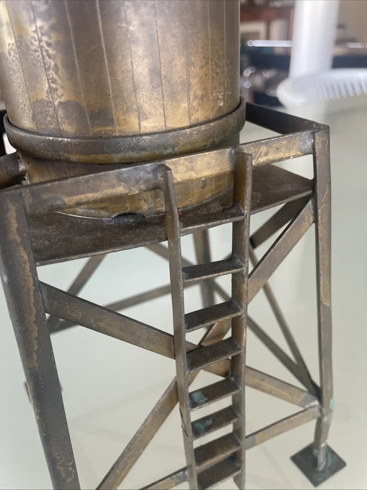 This vintage large scale metal toy railroad water tower is a must-have for any collector of railroadiana and trains. Measuring at 11" x 7", it is a unique piece that is sure to catch the eye of any enthusiast. Made in the United States, this water tower is a great addition to any collection. Excellent vintage condition! Its intricate details and vintage charm make it a rare find, perfect for those who appreciate the history and nostalgia of railroad toys. Add it to your collection today and enjoy the beauty and craftsmanship of a bygone era.