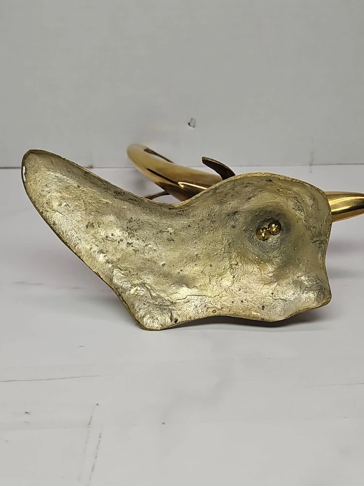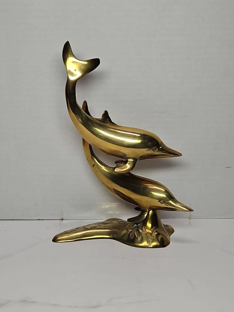 Vintage Large Solid Brass 2 Swimming Dolphins Playful Sculpture Figurine Statue.