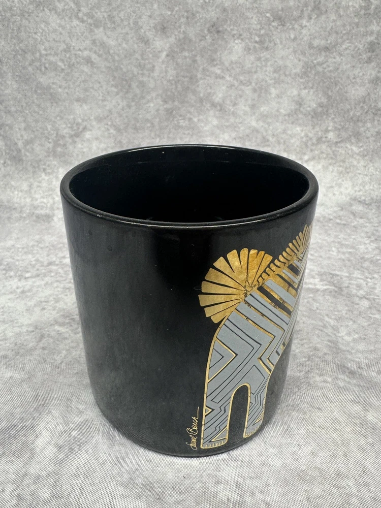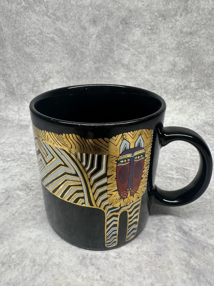 Vintage Laurel Burch Art Coffee Mug, Black with Gold Lion, 12 oz.