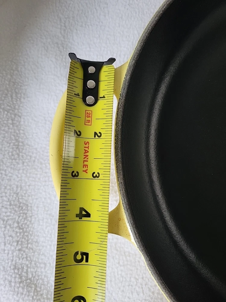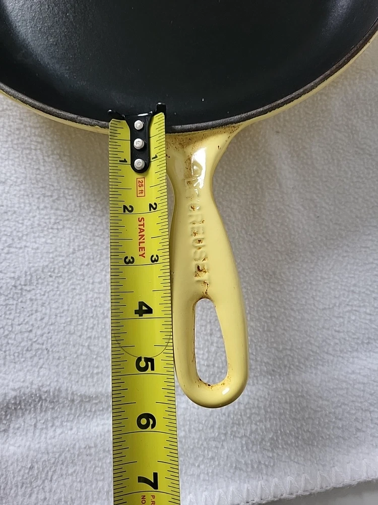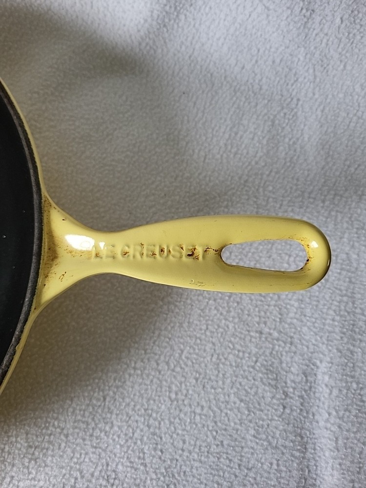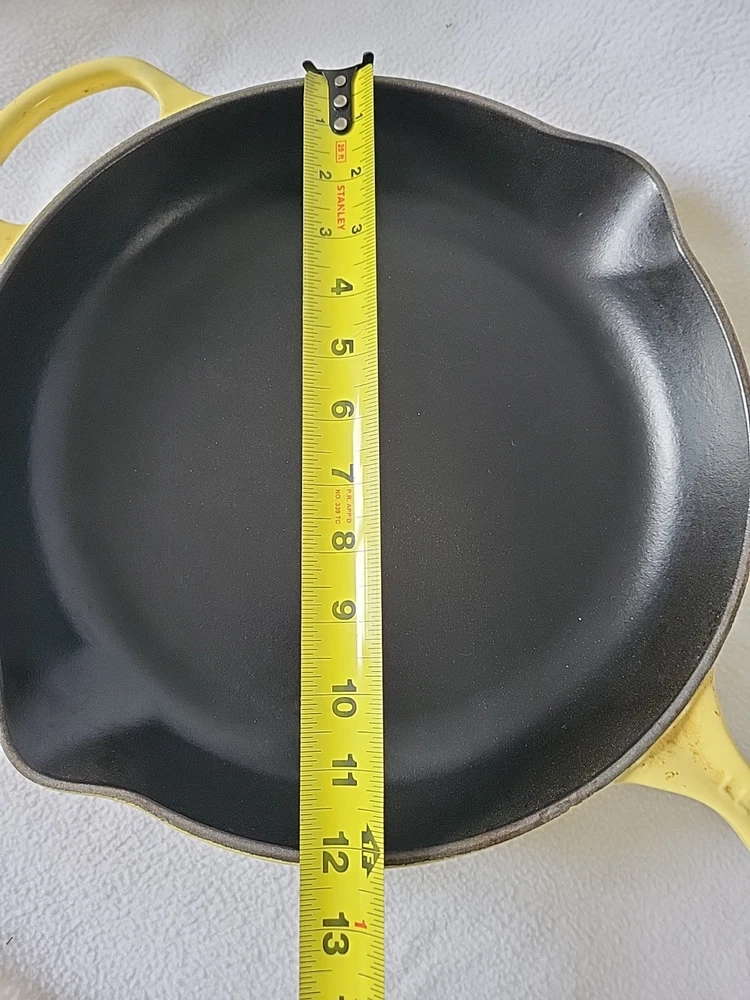 This is a vintage Le Creuset France #30 skillet/griddle, measuring 12 inches in diameter and made of yellow and black enameled cast iron. It is designed for use on induction, electric, or gas stoves, featuring a round shape and a skillet/griddle combination. This collectible piece is an original Le Creuset item, weighing approximately 5 lbs 4oz, with a surface coating of enamel and a vintage design that adds to its charm. Skillet is in good Pre-owned condition, please see photos before buying Thank you for looking at my other stuff Please follow 🤙