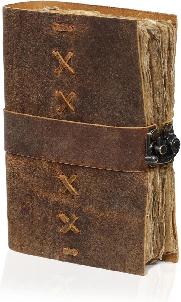 VINTAGE LEATHER JOURNAL: A Perfect Journal for Women and Men. This Vintage Journal is Made from Genuine Buffalo Leather which is naturally tanned with oils and is chrome free. As these Daily Journals are made with genuine Cruelty free leather so each vary in look and shade producing a unique item. JOURNAL NOTEBOOKS WITH STURDY BINDING: Belt Wrap around closure with Antique Bras lock to keep the papers of the journal safe when not being used. A sturdy hand stitched binding to make sure that no paper comes out loose. PERFECT GIFT: This vintage-inspired journal serves as an exquisite and timeless gift suitable for a diverse range of recipients, including women, men, teen girls, boys, and cherished grandparents. A lovely treat for your loved ones for an anniversary, birthday or graduation present, or for someone starting a new adventure