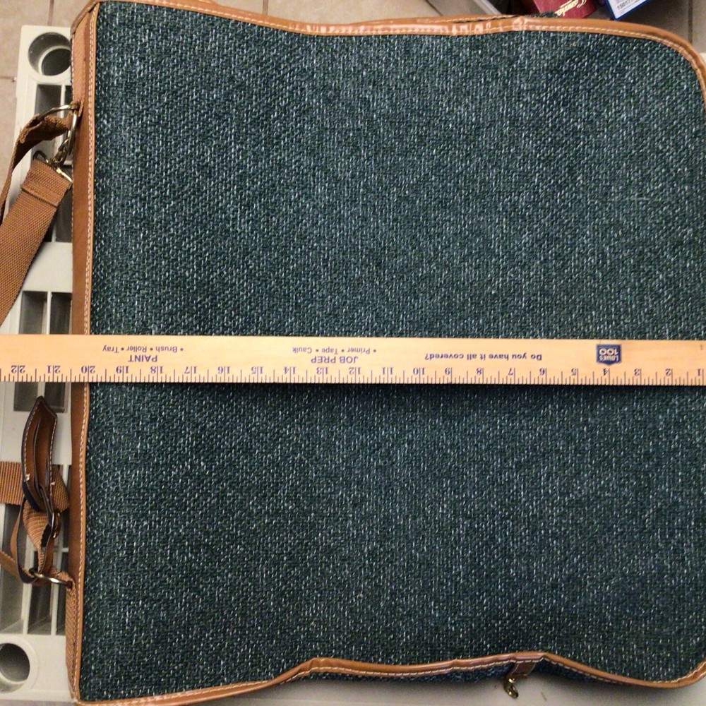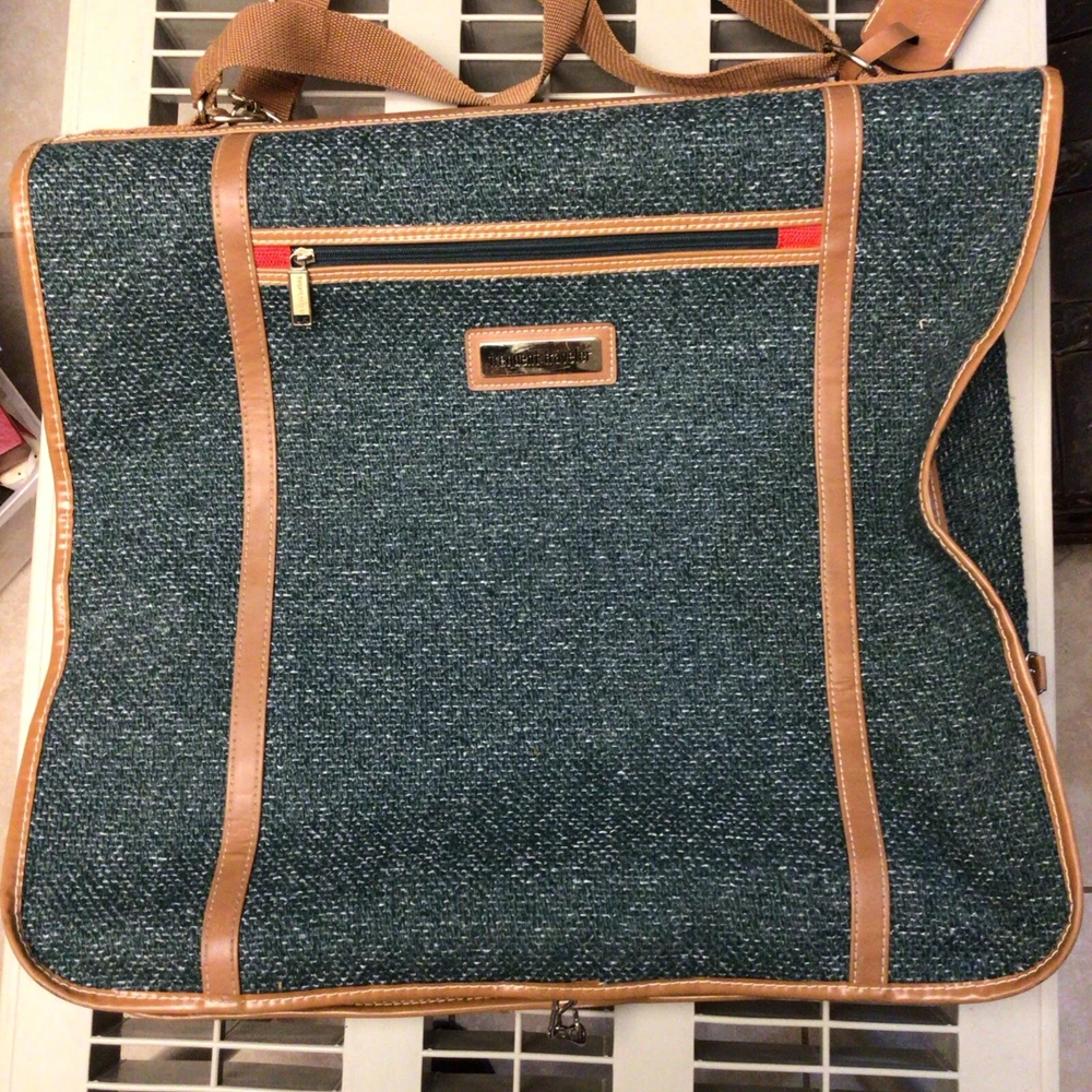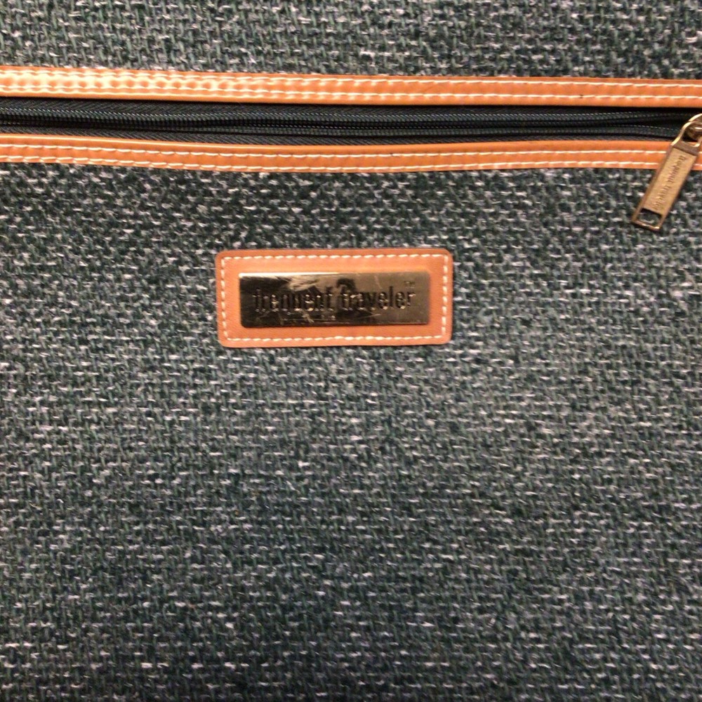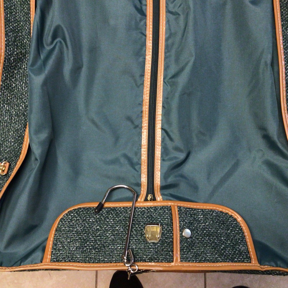 The "Vintage Garment Bag by Frequent Traveler" is a 20" when folded in half, green canvas garment bag designed by Henry Rosenfeld Luggage in Syracuse, New Jersey. It features adjustable straps, a clothing compartment, and a locking mechanism for added security. This unisex adult garment bag is suitable for carry-on use and is made in China. Perfect for storing and transporting clothing while on the go, this bag combines functionality with a retro style that appeals to those who travel often. Don’t believe that it has ever been used. Comes with original lock and key. Measures approximately 20 inches when folded, approximately 44 inches open. Nice bag. Please look at the pictures closely, as this is the item that you will receive.