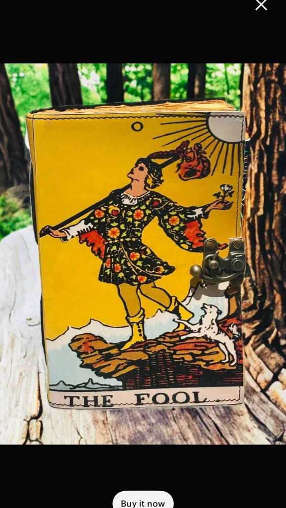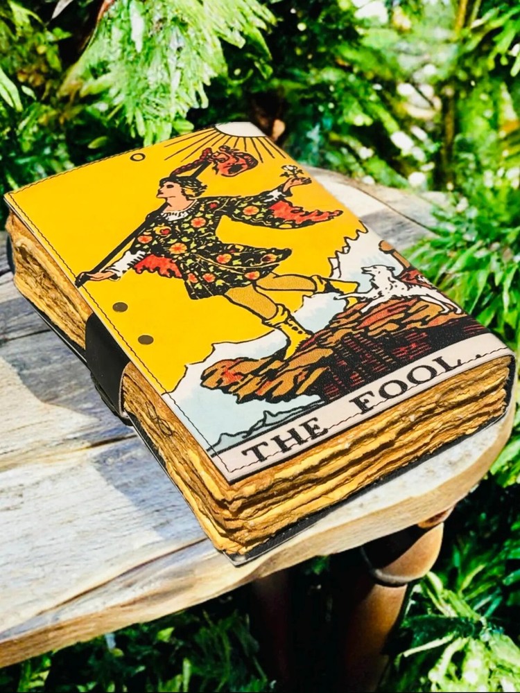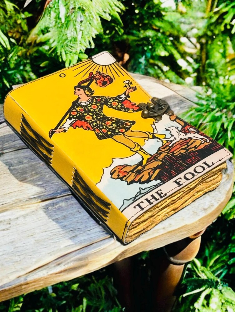 This vintage handmade leather journal is a unique and luxurious notebook featuring a tarot card design and grimoire print. The limited edition journal is personalized with a luxury leather cover from India, making it a special and exclusive piece for those who appreciate finely crafted items. Perfect for business, industrial, or personal use, this journal is a stylish and functional addition to any collection. Large The Fool Tarot Grimoire leather journal, , Blank spell book book of shadows Leather Celestial Gifts For Him Her • Print -The Fool Tarot leather journal • Vintage lock closure • Genuine buffalo leather • Vintage deckle edge old paper • handmade rustic cotton paper • 100 Sheet (200 pages both side) ●leather journal witchcraft book of shadows notebook is made with 200 And 400 of Antique Paper which looks like it was pulled from history. You will fall in love with the the antique handmade cotton paper which is unique to our Vintage Journal Notebook. The Fool Tarot Card ● The vintage clasp lock will keep all your valuable writing locked inside.Sturdy hand stitched binding to make sure that no paper comes out loose from your spell notebook. The Fool Tarot Card ● The witchcraft supplies journal is printed with a special seven stone called “Chakra healing” which helps to reveal inner truth within yourself and encourage self-awareness and self expression. We have taken extra to make sure that the emboss is perfect in every piece.The Fool Tarot Card ● Sketch, Doodle, Write on your Leather Blank Spell Journal with a Calligraphy Pen Fountain Pen, Brush Pen, Ball Pen, Acrylic Colours, Watercolor and many more. We guarantee no bleed through.The Fool Tarot ● Can be used as a notepad, journal, writing notebook, sketch book. 1.25 inch thickness, easy for handwriting, drawing or sketching and compact for carrying in your bag. Ideal for alternative ● Artist Sketchbooks, Photo Album, Traveling Notes, Business Executive, Logbook, Poetry Work, Journalists, Food Planner, Instagram Scrapbook and Bible Journaling.The Fool Tarot Card ● Best Gift For Your Companion: A Journal Is Like A Trusted Friend. You Can Use It To Solve Queries, Get Inventive, Or Record Valuable Memories For Them To Last Forever Or You Can Just Use It As A Gift For Your Wife, Son, Or A Daughter Or For Some Enthusiastic Writer In Your Family. Even For Looking For A Miraculous spell book Or A D&D Gamer Looking For His Quest Book.The Fool Tarot Card ● Perfectly Sized For Multi-Purpose Use: Length 5", Width 1", Height 7" Inches, This Easy To Carry Personal Diary Is Perfect To Use As A Health Journal, Sketchbook, And Poetry Journal. It’S An Ideal Journal Which Records Your Daily Thoughts And Life Lists. And Also Good For Designing, Doodling, Or Calligraphy Of Your Choice.The Fool Tarot Card IGNORE THE FOOL PRINT LEATHER JOURNAL THE FOOL TAROT CARD JOURNAL THE FOOL TARROT CARD LEATHER JOURNAL' BOOK OF SHADHOWS BLANK SPELL BOOK VINTAGE JOURNAL WITCH CRAFT JOURNAL MAGIC JOURNAL SUN AND MOON THE UDAIPUR ART THE FOOL ART THE WORLD TAROT POSTER FOOL TAROT