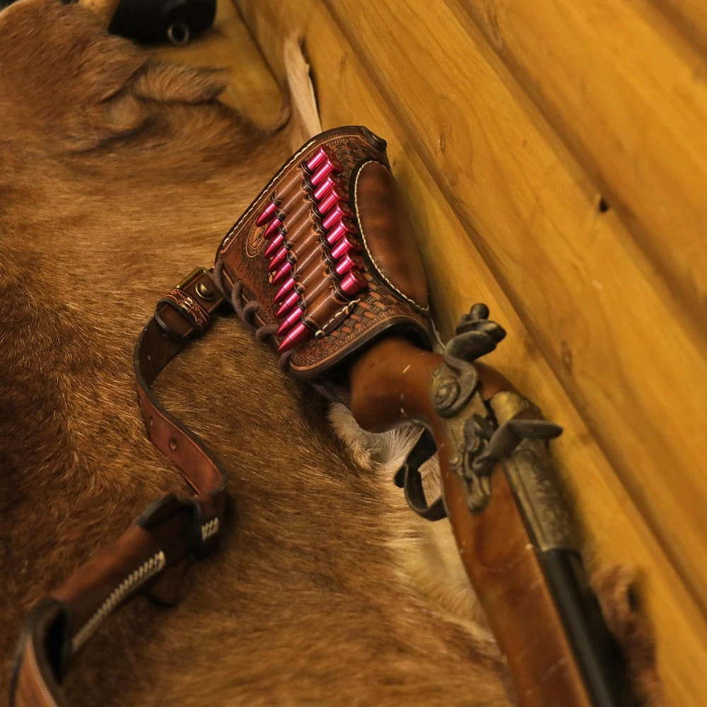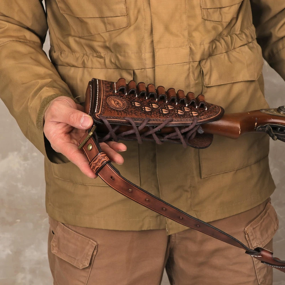 Leather No Drill Cheek Rest: cheek riser is made from vintage leather, and has a cheek pad that will help you align your eyes with the scope Extra Cartridge Holder Slot: Designed to hold rifle or shotgun shells, comes in handy when you are hunting and have to gain quick access to extra ammunition Strap On Cheek Rest Pad: The adjustable strap snugly holds the cover in place but allows for slight differences in stock shape Internal Neoprene Padding: Comes with internal paddings that can be put on or removed, and the padded neoprene cushions can greatly reduce the impact on the shoulder when shooting Metal Slide Buckle: The buckle allows you to attach the matching sling, so you don't need to drill into the wood of your rifle or shotgun.