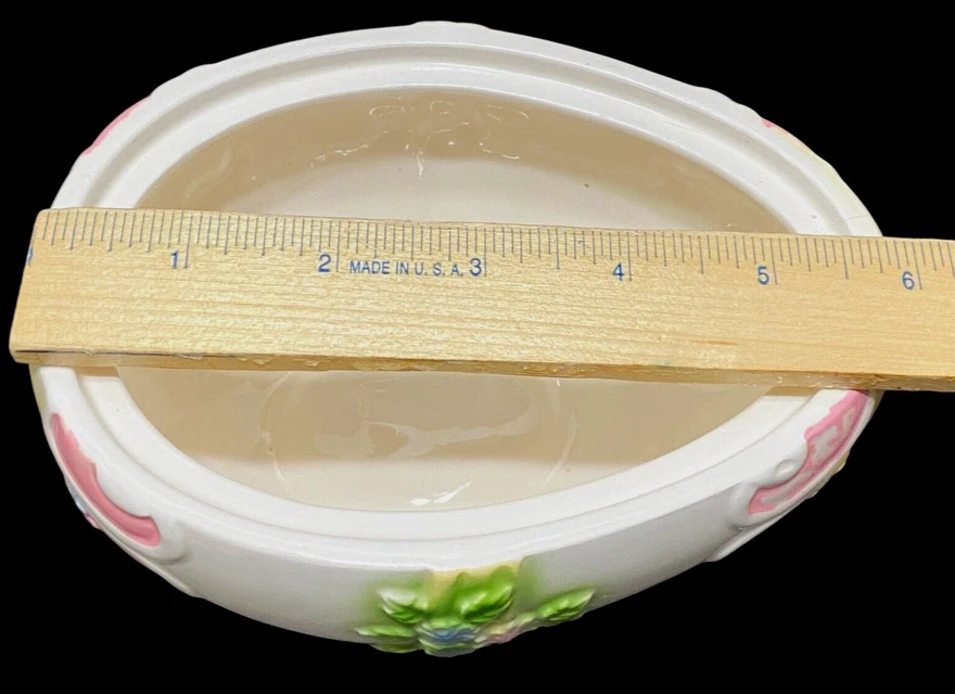 Packaging:Double BoxedItem Width:4 1/2"Seller Notes:“No cracks. One broken petal and it is missing some paint. Please see last two photos to see flaws.”Features:Label IntactRoom:Any RoomItem Length:6 1/2"Department:AdultsCountry/Region of Manufacture:JapanMaterial:PorcelainType:Collector EggPattern:RosesNumber in Pack:1Color:Pink & Yellow, Blue & GreenSubject:EggOccasion:EasterCustomized:NoTime Period Manufactured:1960-1969Signed:NoBrand:LeftonHandmade:NoSize:MediumOriginal/Reproduction:Original