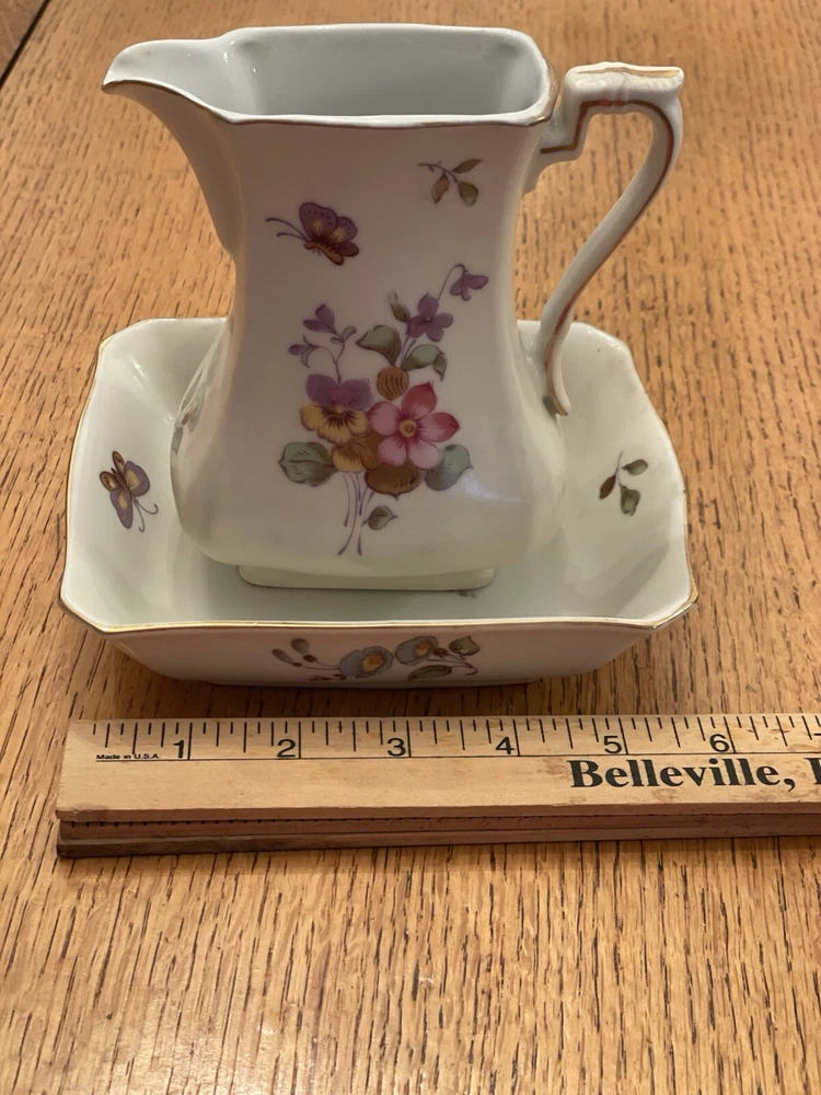 Vintage Lefton Floral Hand-Painted Pitcher and Bowl Set