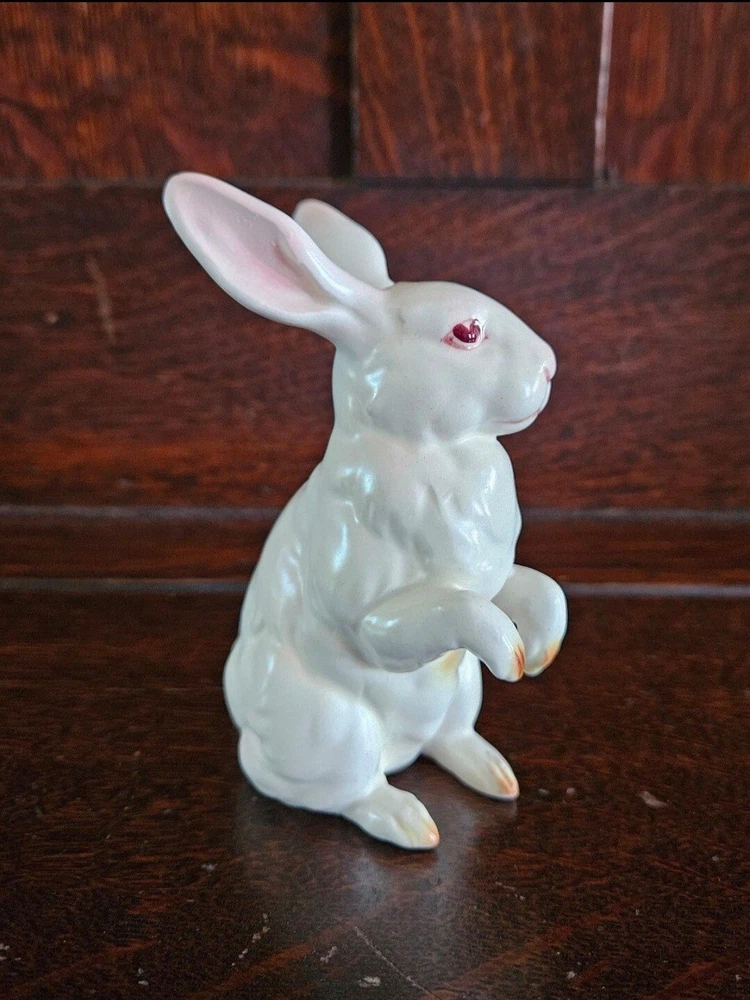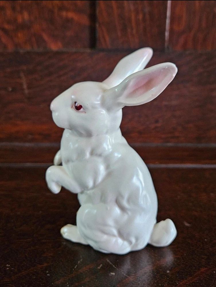 A vintage white rabbit made by the Lefton company, it stands about 4.5" tall.