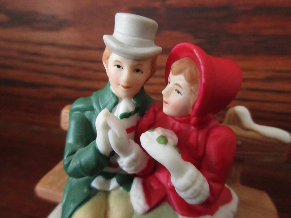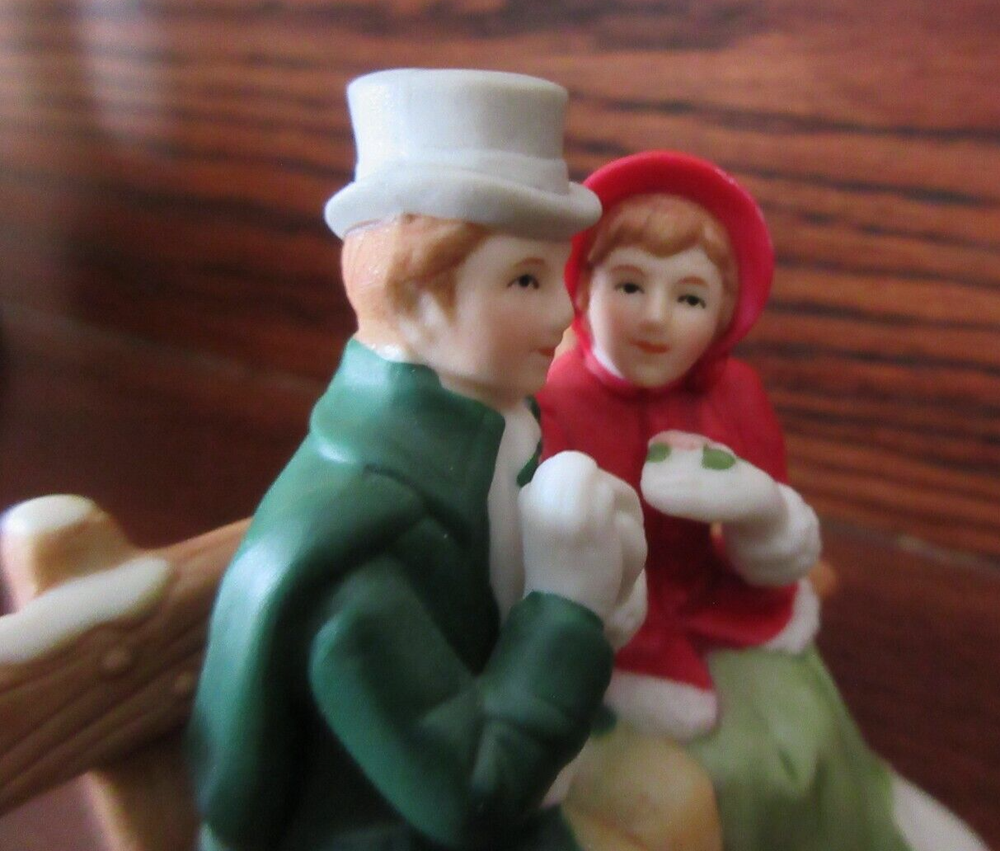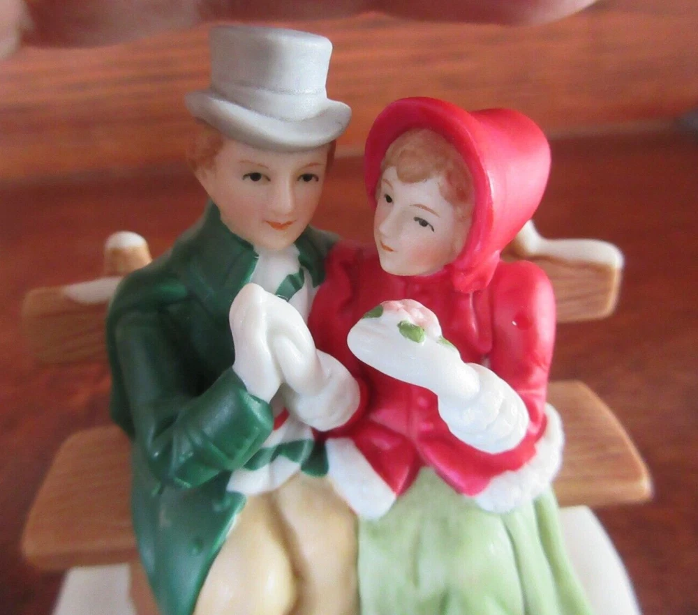 MRS HAS A MANUFACTURE EFFECT ON HER LEFT UPPER ARM, SEE LAST PIC, LOOKS LIKE A SPOT OF GLOSSY DOT, DOES NOT DISTRACT FROM FIGURINE. BESIDES THAT, FIGURINE IS MINT. Vintage Lefton Colonial Village figurine Features a charming couple, Mr. & Mrs. Anderson, sitting on a park bench. The figurine is hand-painted and made of porcelain, with colorful and intricate details that make it a perfect addition to any holiday display. Colonial Christmas Village collection #00221. 2+3/4 inches in length 2+1/2 inches in height, making it a small and delicate piece. The figurine is an original Lefton design from 1991 and is ideal for collectors who enjoy adding unique and special items to their collection.