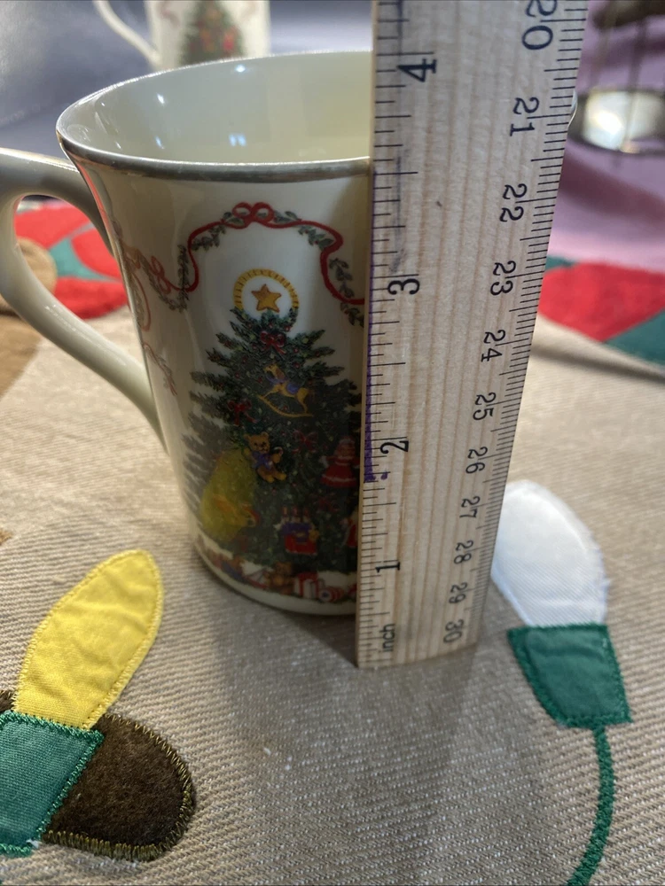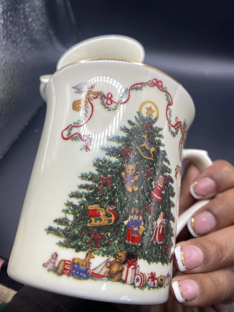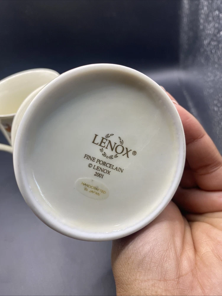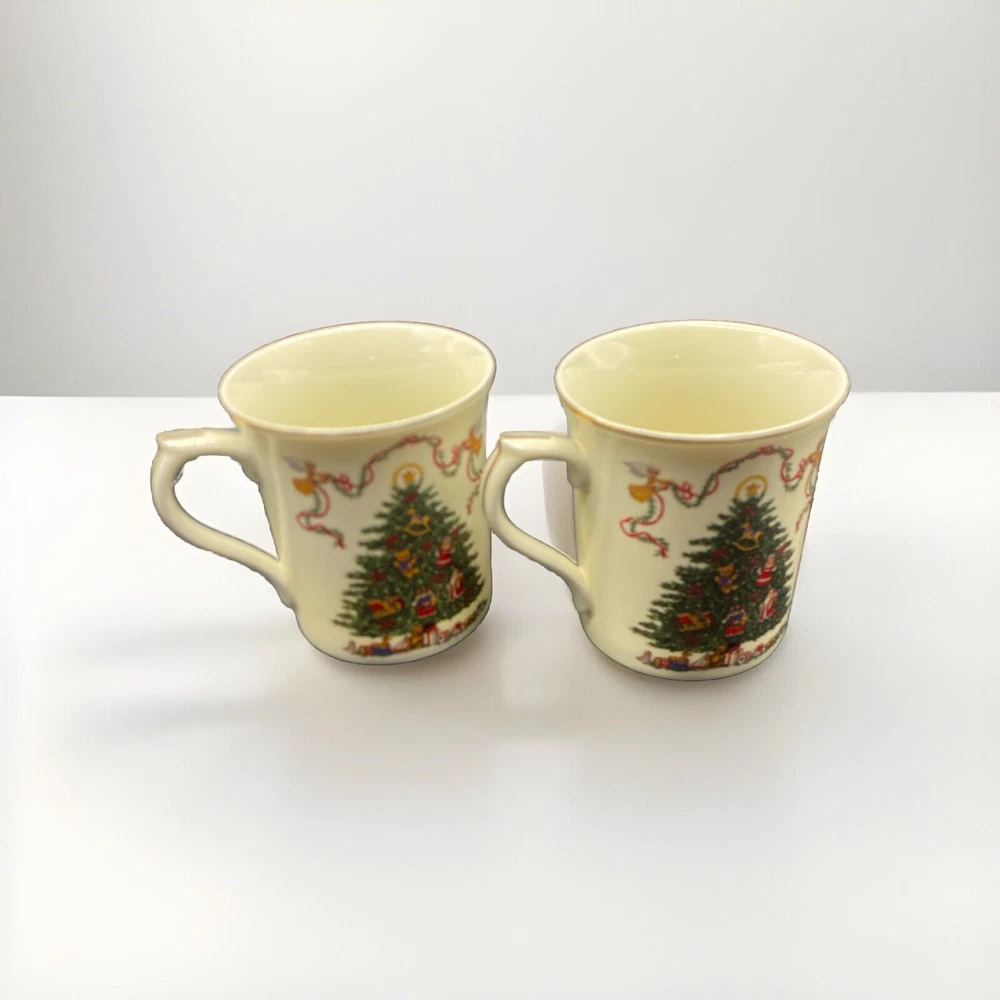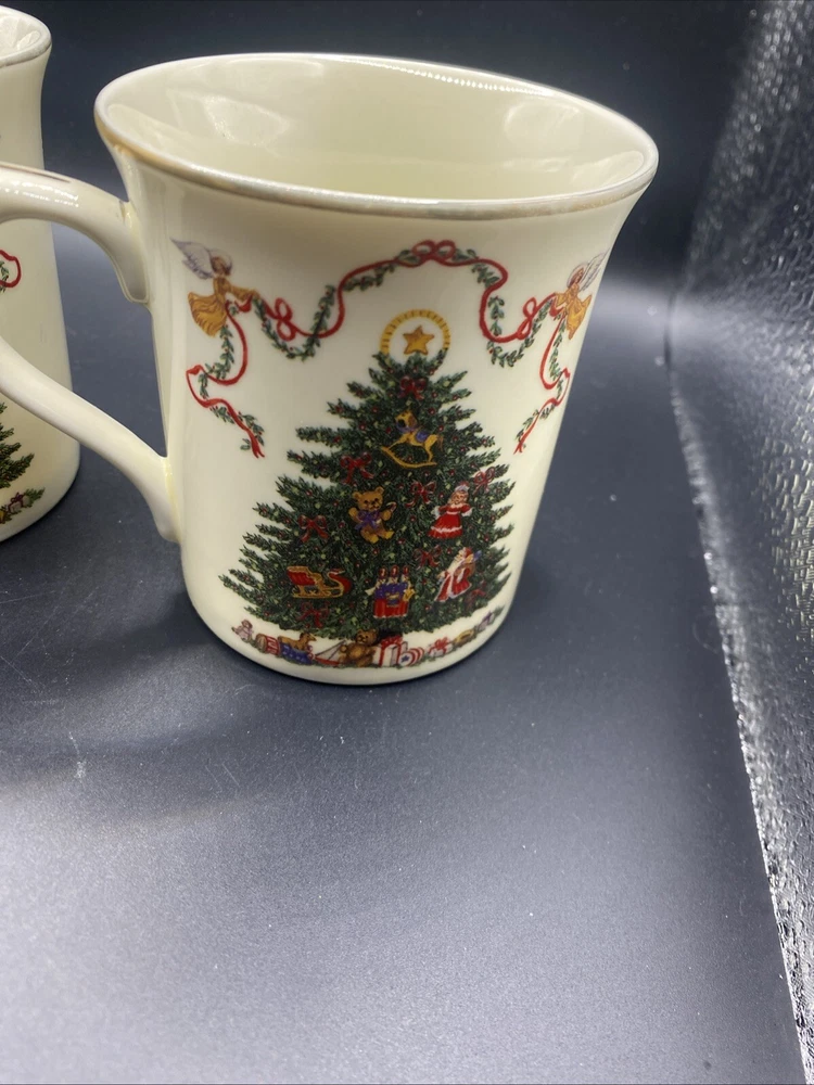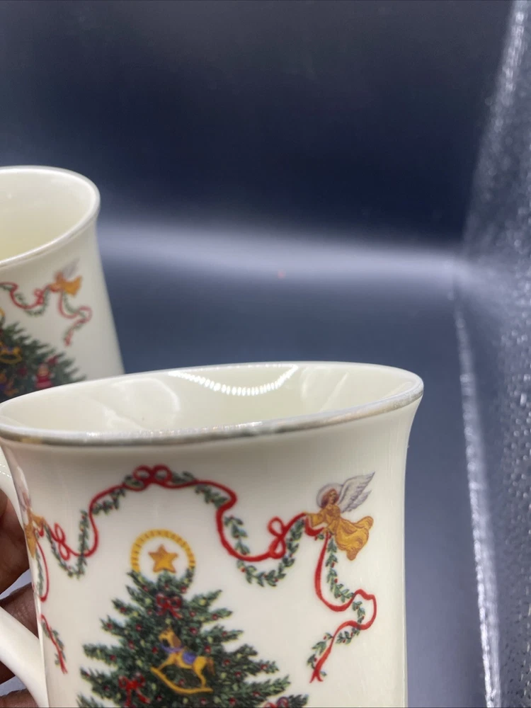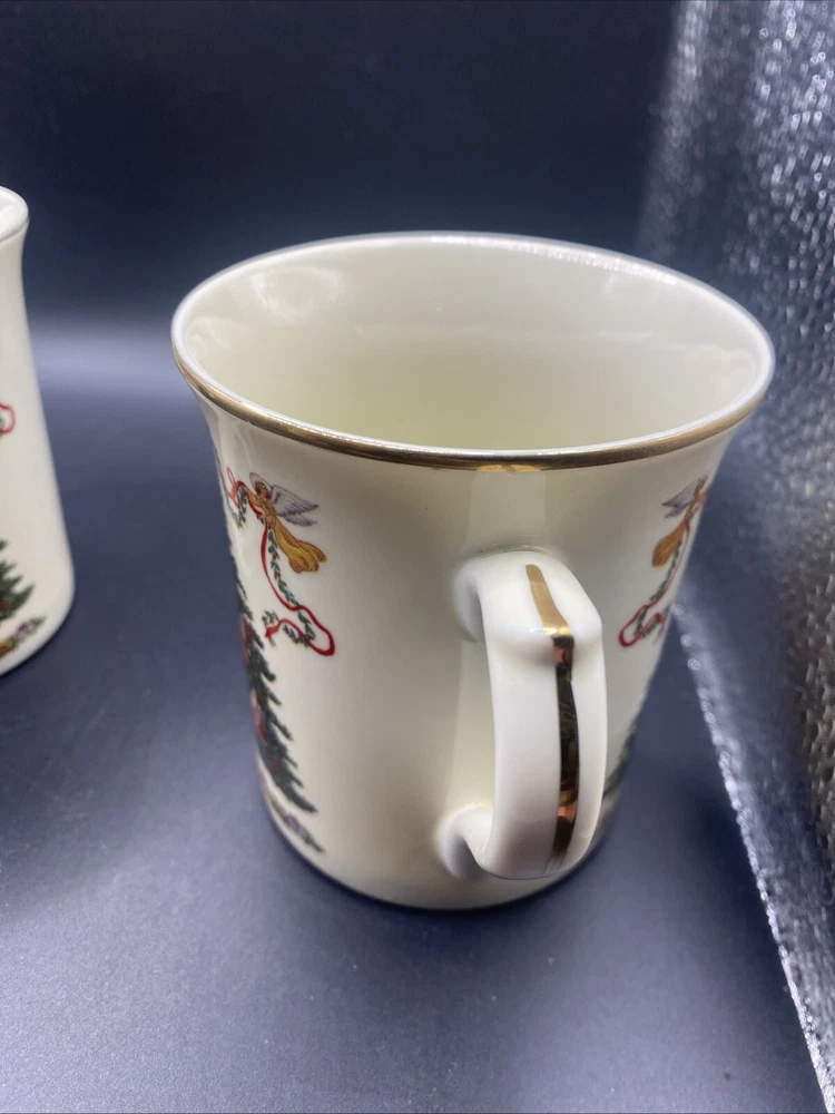 Vintage Lenox 2001 Fine Porcelain Christmas Tree Mug Cup Set of 2 (Two) 3 3/4"