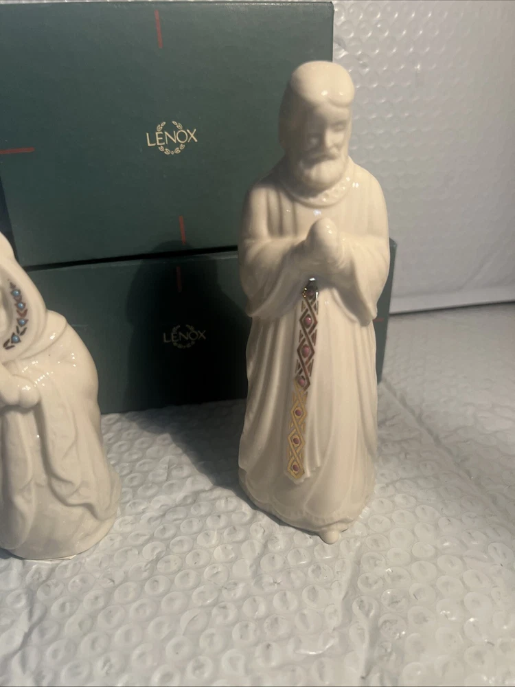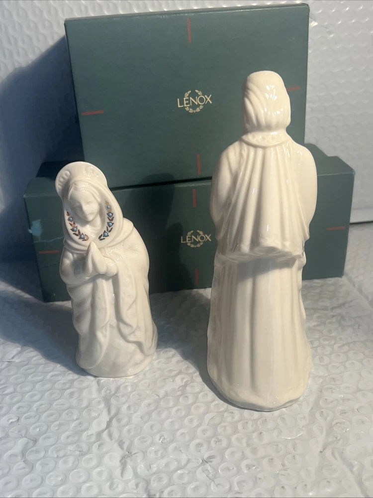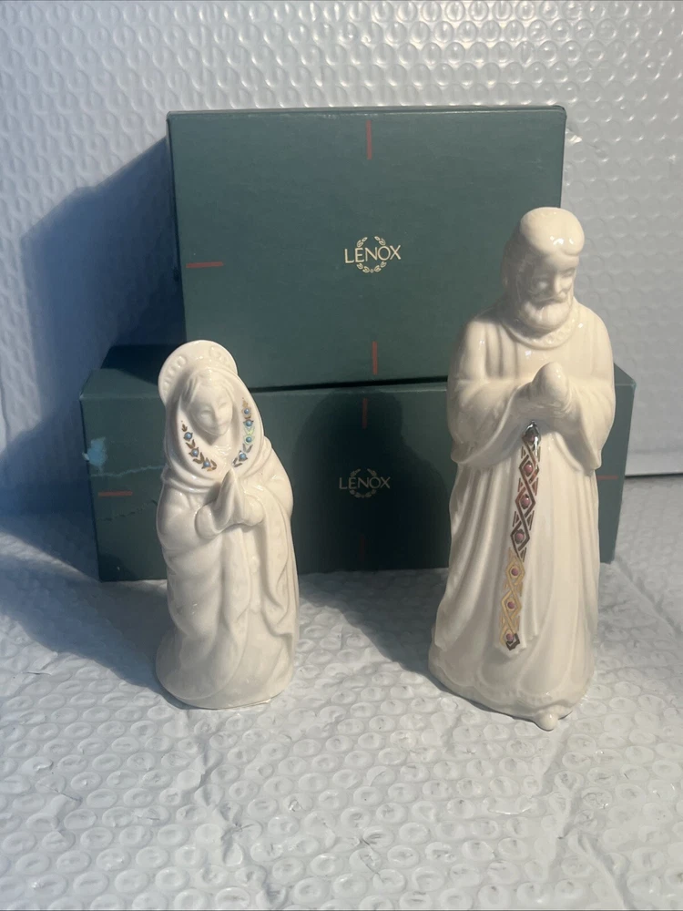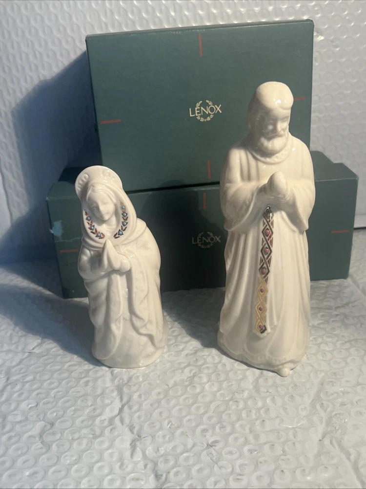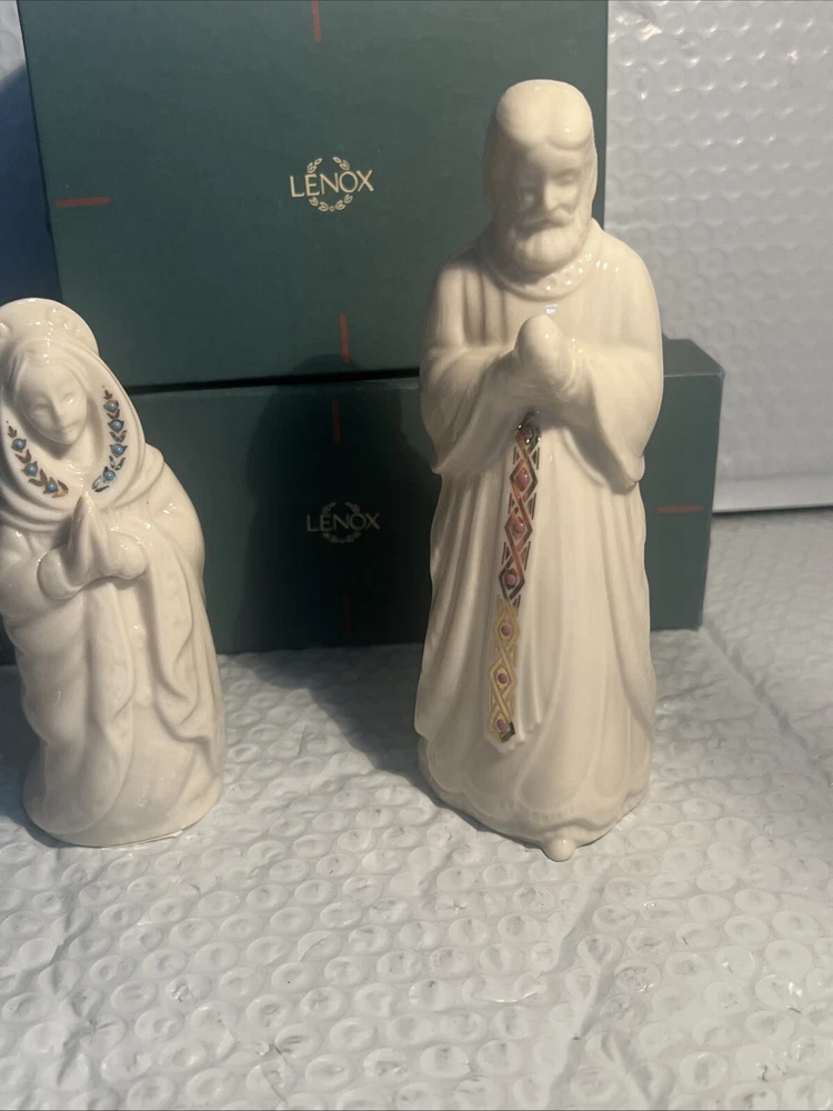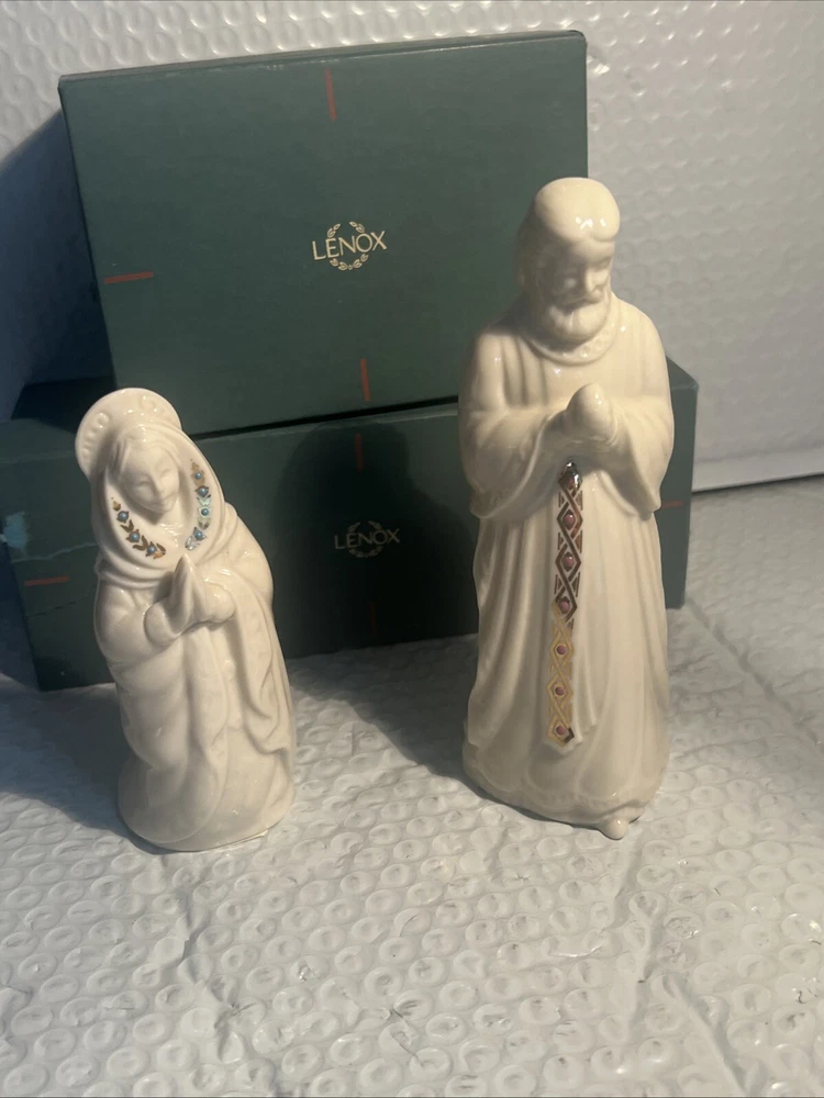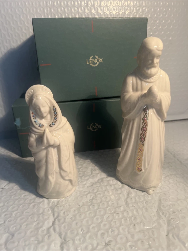 Collection: China Jewels Character: Marie Brand: Lenox Subject: Christmas Set Includes: Joseph, Mary Number of Items: 2 Theme: USA Year Manufactured: 1993 Seller Notes: “both in mint w/original box” Recipient: Family Country/Region of Manufacture: United States Features: Embellished, Vintage Type: Nativity Set