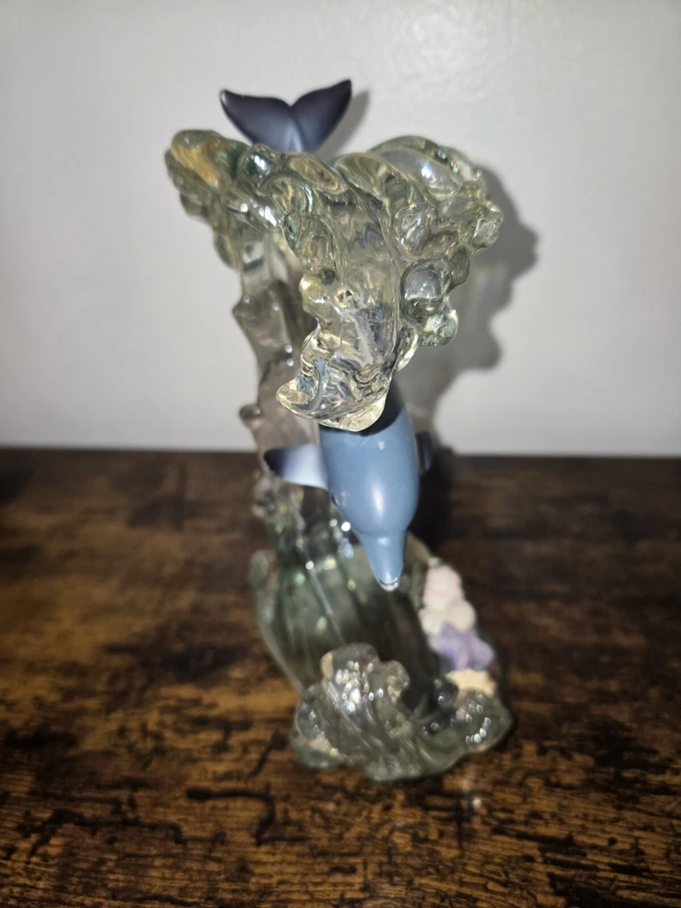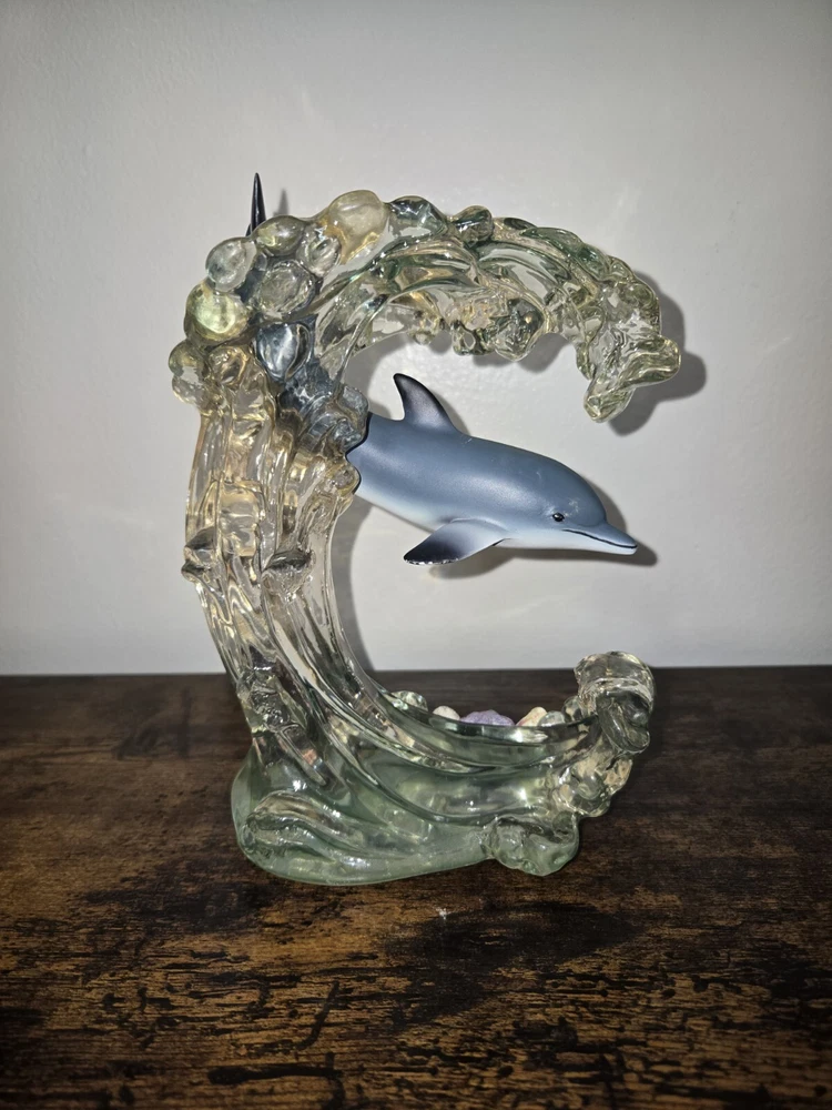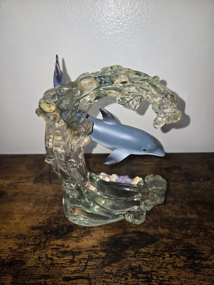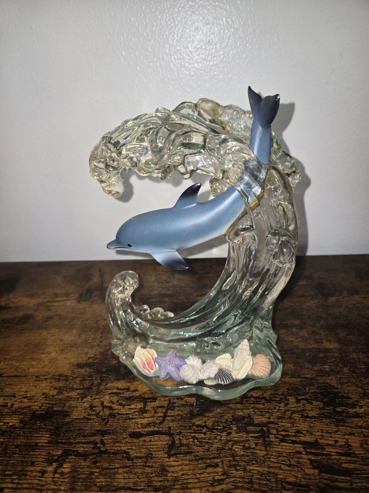 Add a touch of the ocean to your home decor with this beautiful vintage Lenox dolphin figurine. Made from high-quality resin, this glossy finish figurine features a charming dolphin leaping out of the ocean waves. The clear color of the resin gives a realistic look to the figurine, making it a perfect addition to your collection. Perfect for all occasions, this figurine will delight any animal lover. With its contemporary style, it fits well with any home decor. The figurine comes with one dolphin leaping out of the ocean waves, and it is a perfect gift for your loved ones.