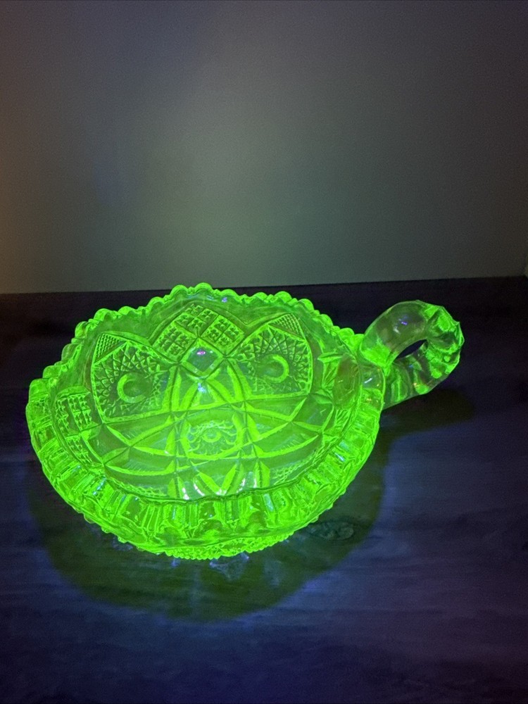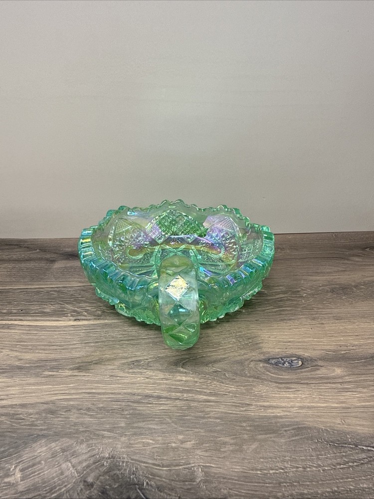 Vintage Lenox Imperial Glass Uranium Green Saw Tooth Candy Dish