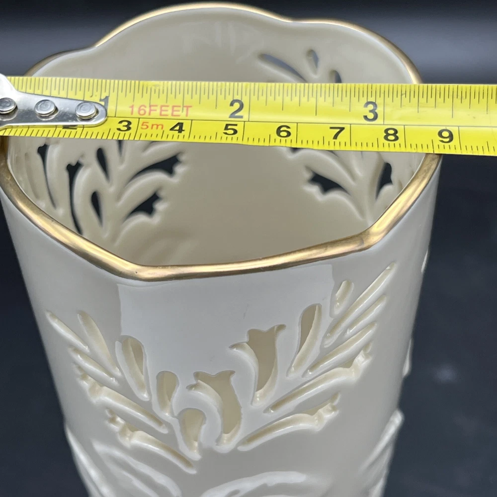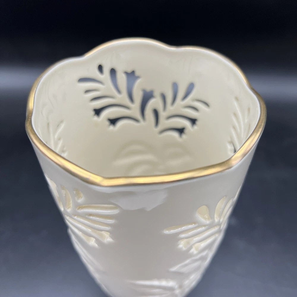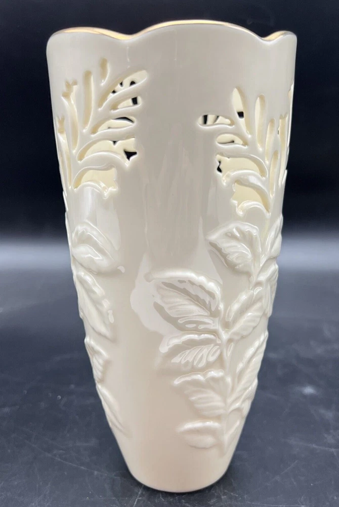 Vintage Lenox Lattice & Raised Leaf Vase 7 Inch 24 Gold Trim. Made in USA This vase is in Excellent pre owned condition from my dear friends collection . I will pack with care and get it to you ASAP Thank you for looking !