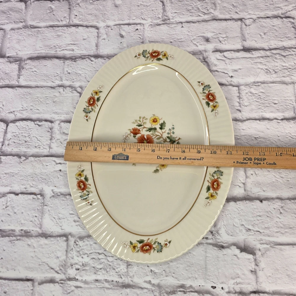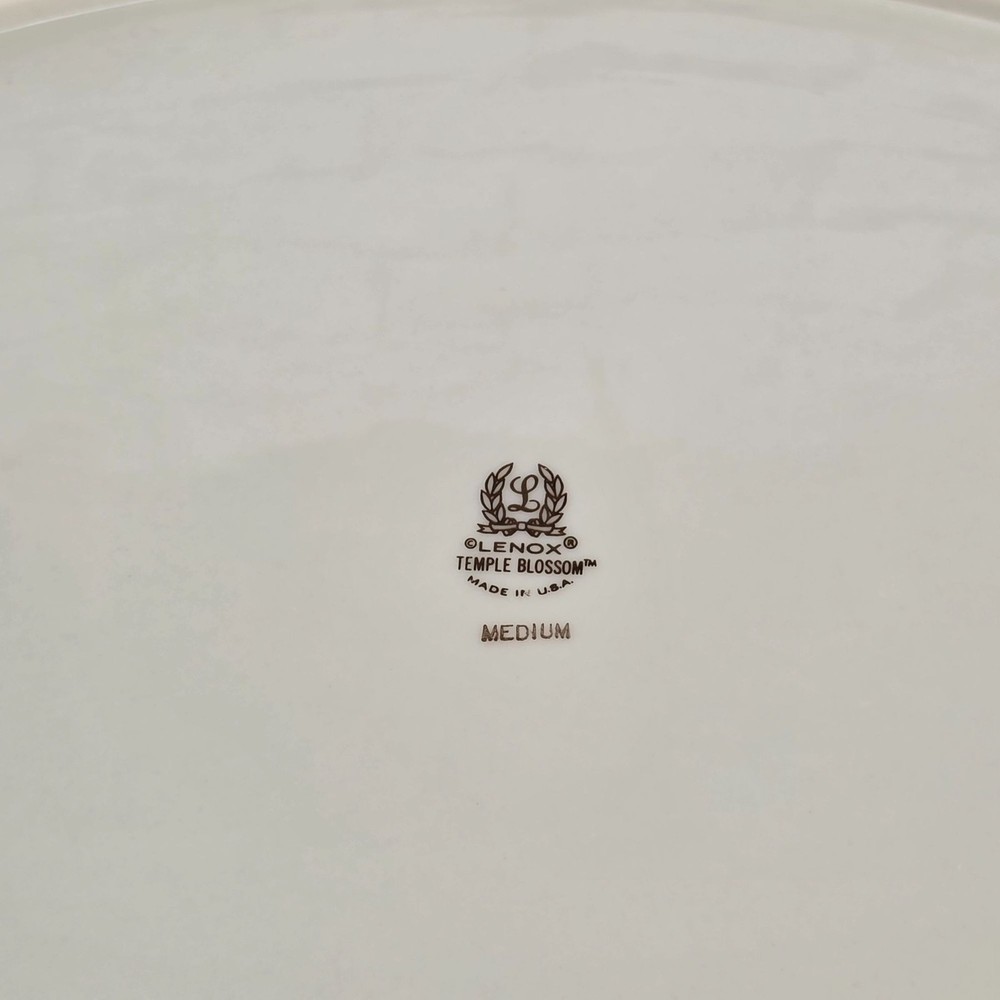 Vintage Lenox Oval Serving Platter 15.6" Porcelain Temple Blossom Floral Design USA Serve your favorite dishes with a touch of classic American elegance with this vintage Lenox "Temple Blossom" platter! 🤩 This isn't just a serving piece; it's a timeless work of art from a brand celebrated for its exquisite craftsmanship and enduring quality. A Look Back at a White House Favorite 🕰️ Lenox has been a symbol of American excellence since its founding in 1889. Renowned as the first American company to create an official White House state service, the brand's porcelain has graced presidential tables for over a century. The "Temple Blossom" pattern, produced from 1978 to 1991, perfectly captures the brand's tradition of creating sophisticated, beautiful dinnerware. Made with pride in the USA, this platter embodies the elegance and artistry that made Lenox a household name. What You'll Get 💖 Authentic Vintage Lenox: A genuine porcelain oval serving platter from the "Temple Blossom" pattern. Exquisite Design: Features a warm ivory base, stunning floral designs in orange, yellow, and green, and a sophisticated gold trim. Perfect Size: Measuring approximately 15.6 inches, it's ideal for serving roasts, vegetables, or a collection of appetizers. Durable & High-Quality: Made from premium porcelain, this piece is built to last and is a true collector's item. Made in USA: A piece of American craftsmanship that represents the brand's rich heritage. We are a small family business that is passionate about vintage treasures and providing top-notch service. We use recycled packaging materials to protect your purchase and the environment. 🌎 Buy with confidence and get this piece of American elegance delivered with FAST & FREE SHIPPING! 📦