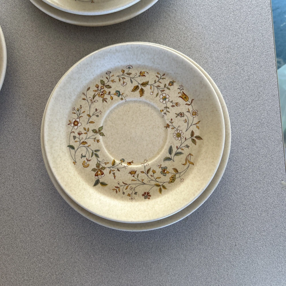 Add a touch of vintage charm to your dining table with this 25-piece set of Lenox Temper-ware Merriment. The set includes a variety of pieces such as salt and pepper shakers, plate set, serving bowl, side plate, and cup, all of which are crafted from high-quality stoneware and ceramic materials. The floral pattern and beige color give the set a timeless and elegant look that is perfect for any occasion. This Lenox dining set is made in the United States and has a rich history that dates back to America's past. The set is perfect for collectors and enthusiasts alike who appreciate the beauty and durability of vintage dinnerware. Whether you're hosting a formal dinner party or a casual family meal, this set is sure to impress your guests and make your dining experience memorable.