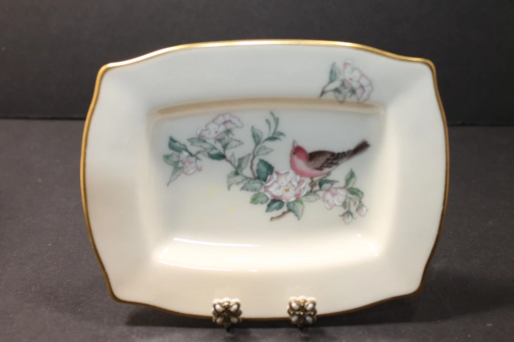Vtg Lenox USA Hand Decorated 24K Gold Bird Flower Serenade Tray 5.25 Set of 2. They are in very good condition, no chips or cracks. Measures: 5.25" L, 4" W. They are marked and have the original stickers on the bottom. Please see photos for more details. Please note that the item is vintage and may show signs of wear. We have done our best to honestly and accurately describe and photograph the item, including possible flaws. What you see are the actual photos of the item being sold. If you have any questions regarding the item, please ask! We DO NOT SELL outside United States. SHIPPING The item will be shipped within three business days after receipt of payment. We ship via USPS to any location within the 48 continental United States, NO INTERNATIONAL SHIPPING. Shipping is calculated by EBAY based on the weight and size of the item plus packaging. We can combine shipping in case you buy multiple items that can be safely shipped together. Thanks for looking!