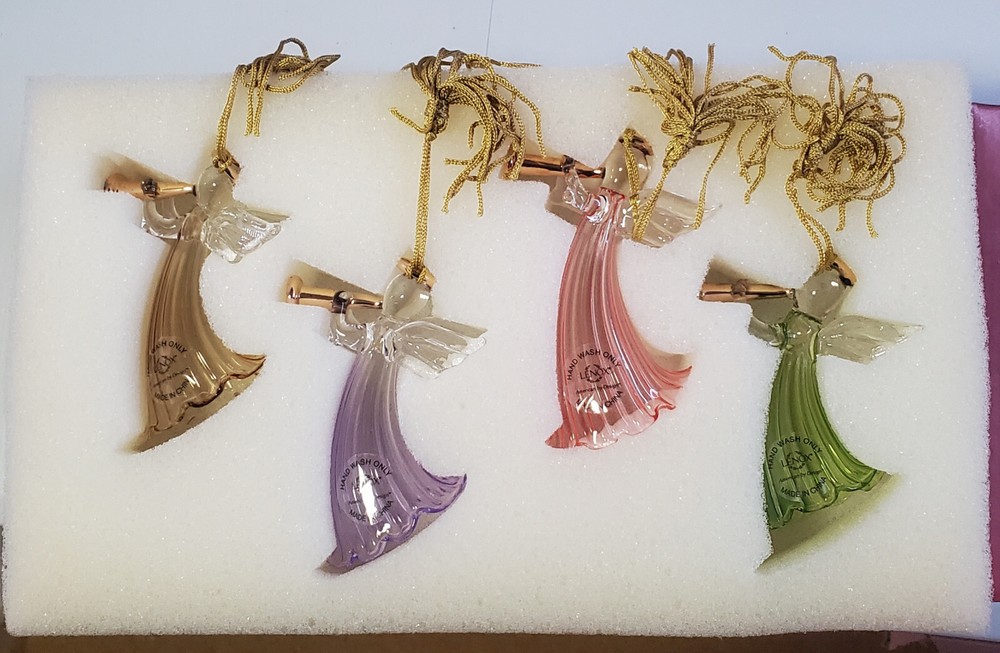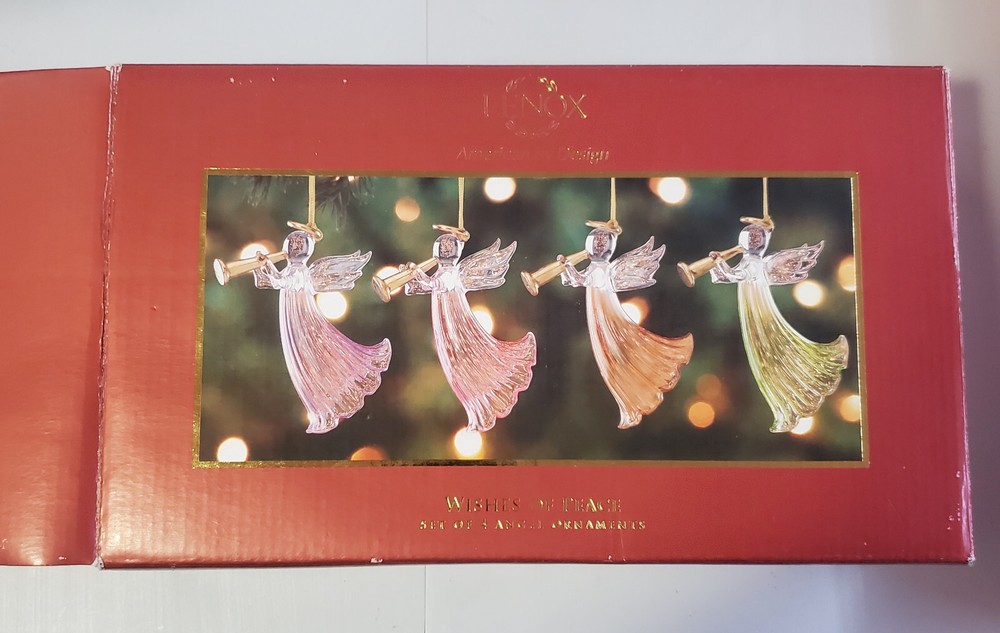 Add a touch of elegance to your Christmas tree with this set of four vintage Lenox American By Design "Wishes of Peace" glass ornaments. The ornaments feature a beautiful angel design and are made of high-quality, hand-blown glass with a clear finish. Each ornament in this set is 3.25 inches in height and features intricate details that make them a perfect addition to any ornament collection. The set includes four ornaments and is produced with art glass techniques. These ornaments are perfect for anyone who loves angels or peace-themed decorations. Add them to your collection today!