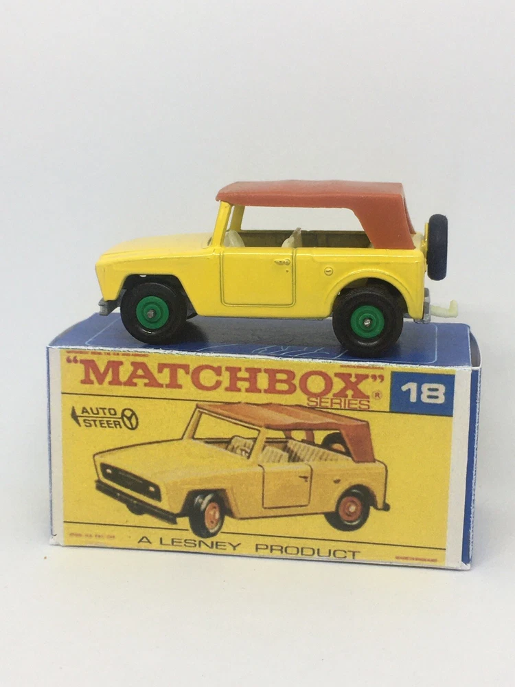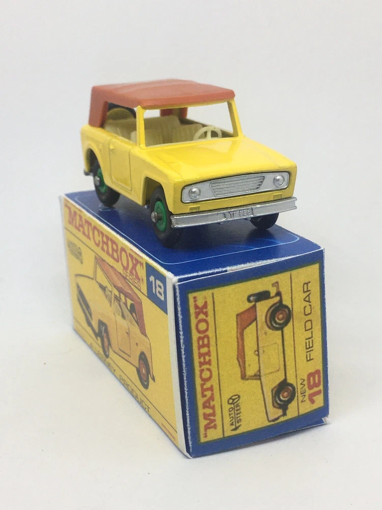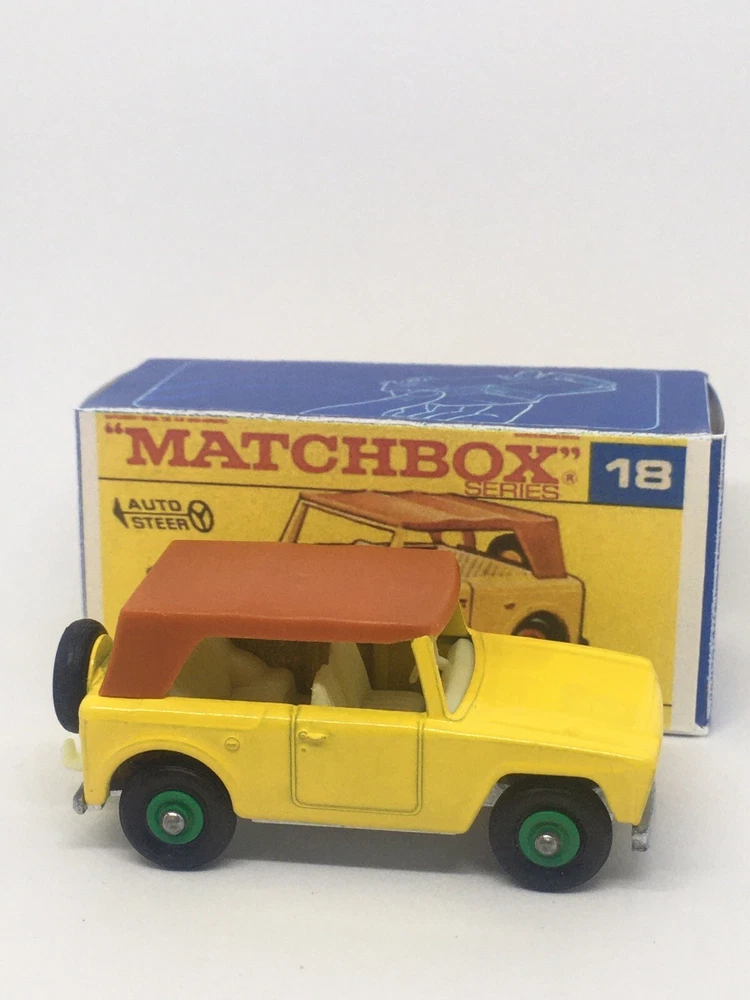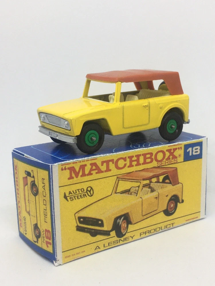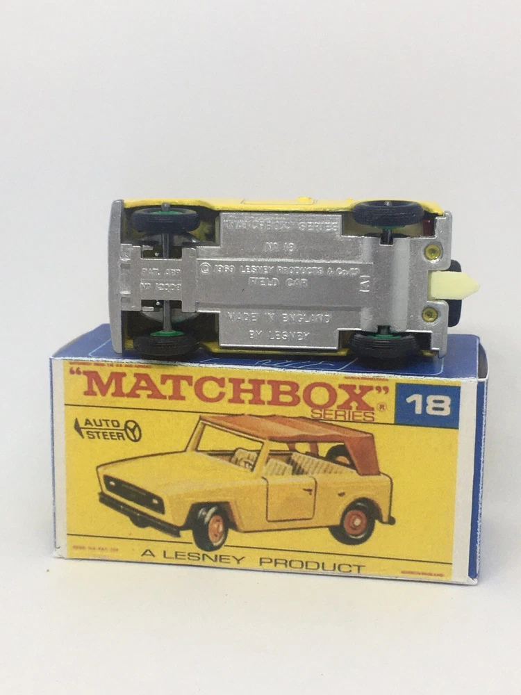 Vintage Lesney Matchbox 18 Custom Green hub field car Repro Box RESTORED, NOT ORIGINAL. I restored the vehicle to a high standard with a new displayable storage box. These models and packaging are not original. Please look at the pictures carefully as they are part of the description. Please ask questions before bidding. I combine shipping with multiple orders. These are custom models so I do not except returns. This is a hobby and the vehicle was a used played with toy now restored.