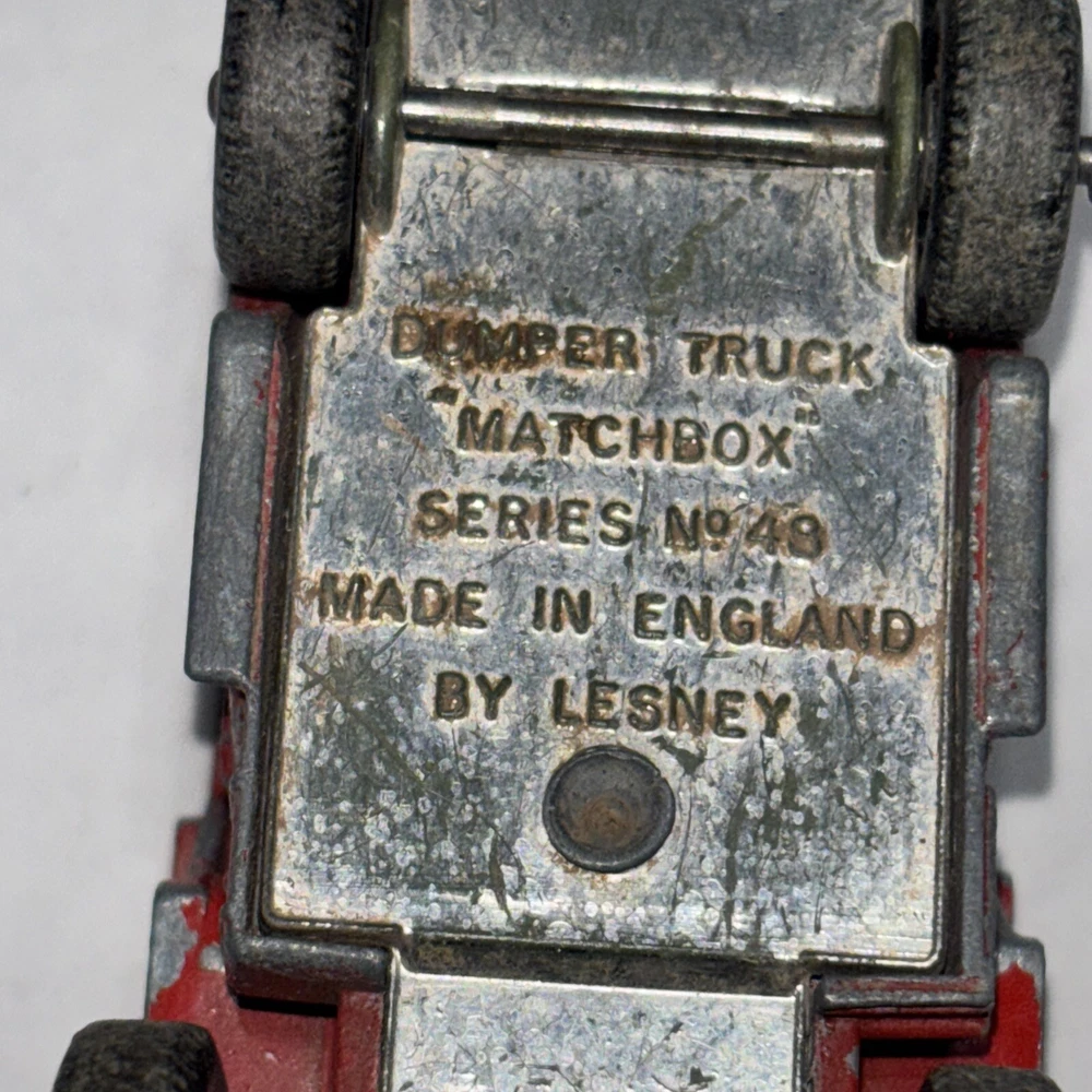 The Vintage Lesney Matchbox Dumper Truck No. 48 is a classic diecast toy car from the Matchbox 1-75 series. This red truck, part of the Series No. 40 models released in 1966, features a dumper design that echoes the real-life construction vehicles of its time. Made of durable diecast material, this collectible truck showcases the quality craftsmanship and attention to detail that Matchbox is known for, making it a sought-after piece for vintage toy car enthusiasts.