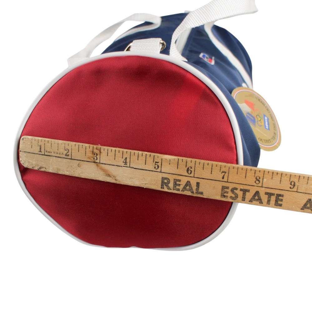 • Vintage Levi’s USA Olympics duffle bag • Official “Outfitter of the 1984 Olympics” branding • Navy blue body with red ends and white straps • Levi Strauss & Co Olympic patch on front • Original Levi’s tag still attached (deadstock feel) • Dual carry handles + detachable shoulder strap • Zipper top closure • Classic retro athletic/gym bag style • Rare collectible piece—great for vintage or Olympic collectors Condition: Excellent vintage condition.